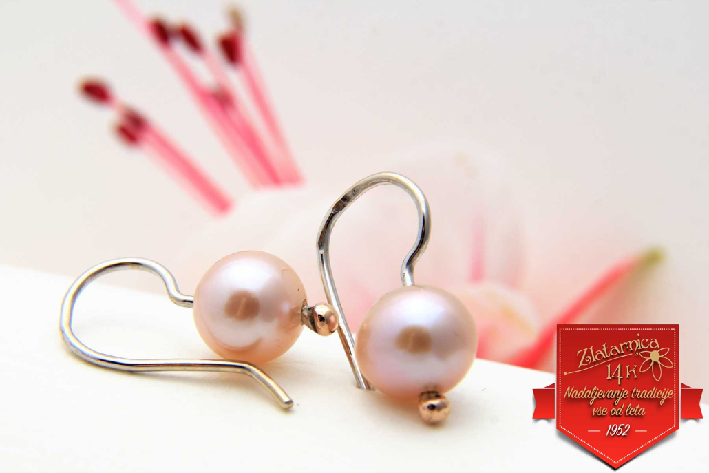 Material: belo in rose zlato (585), roza sladkovodni gojeni biseri 50 kosov.
