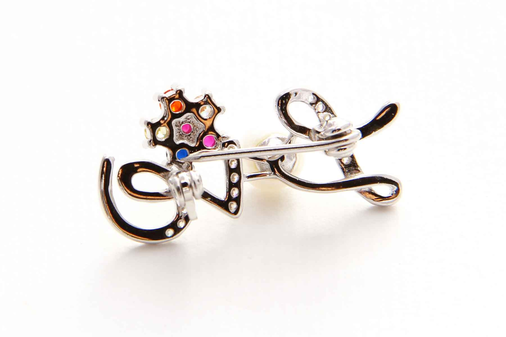 Zanimiva broška z belim biserom Swarovski in barvnimi kamni.