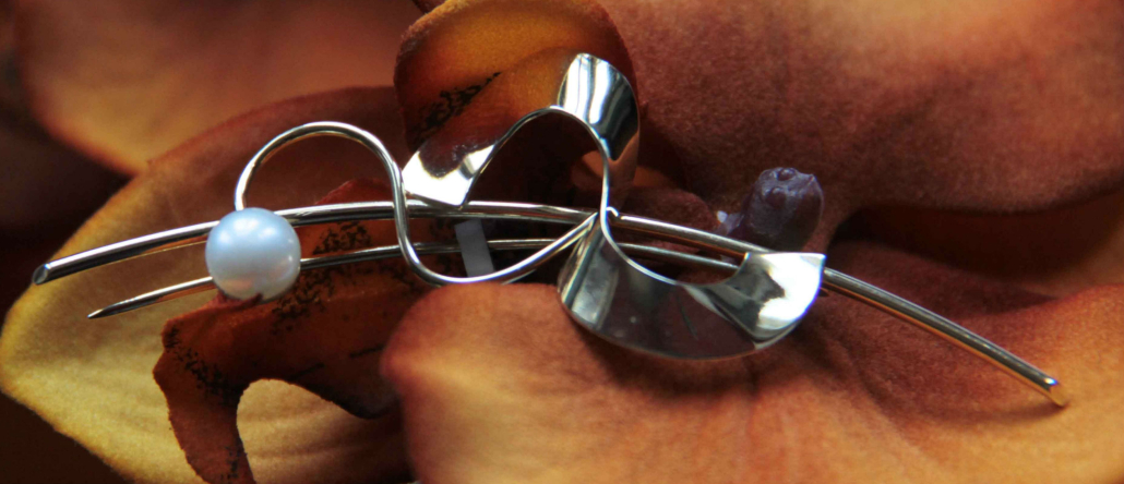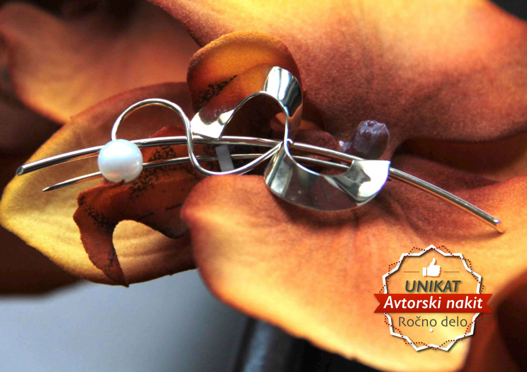 Unikatna in ročno izdelana broška s sladkovodnim gojenim biserom.