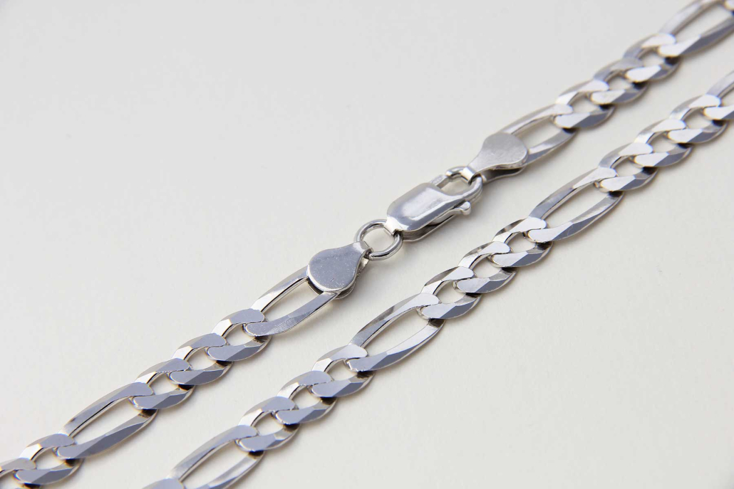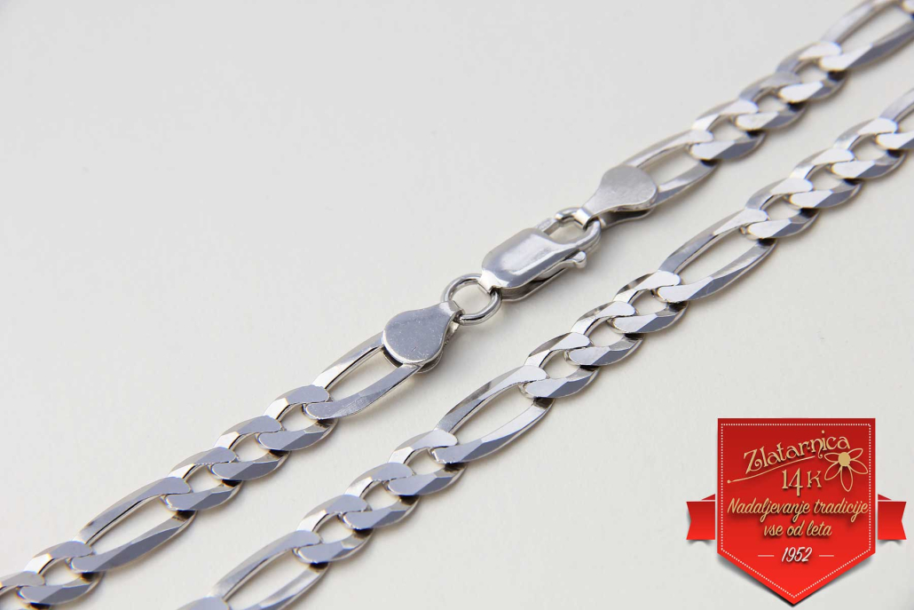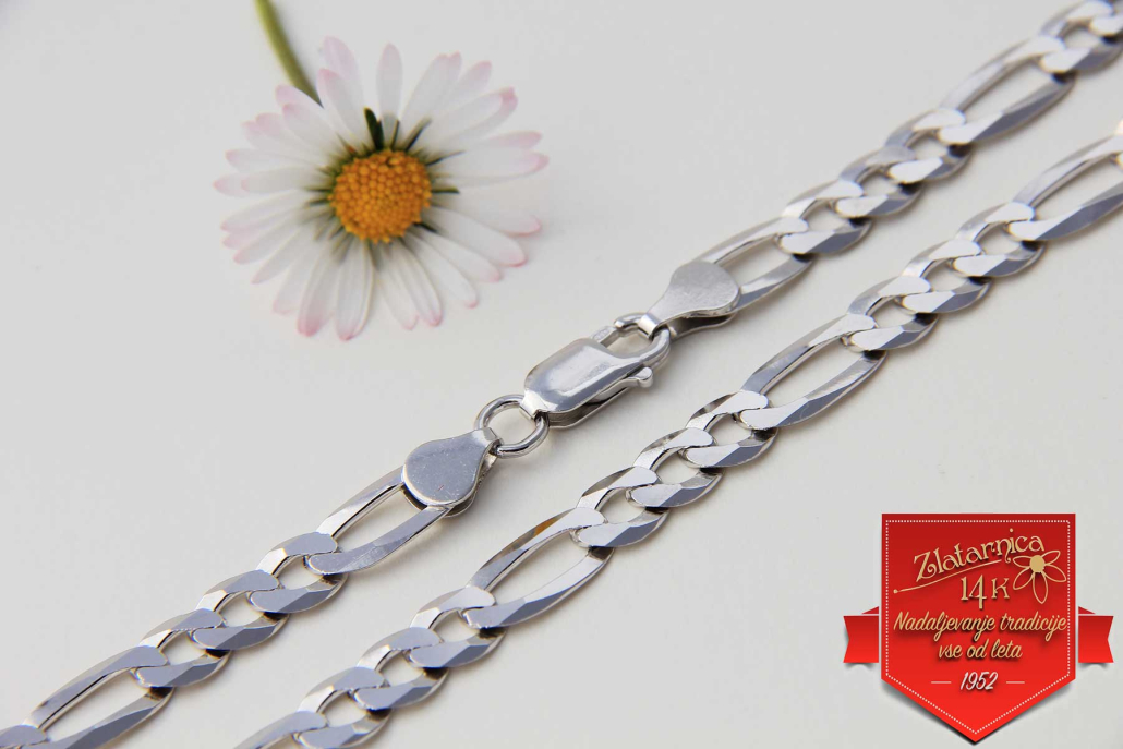 Široka, masivna srebrna verižica veza figaro, moške dolžine.