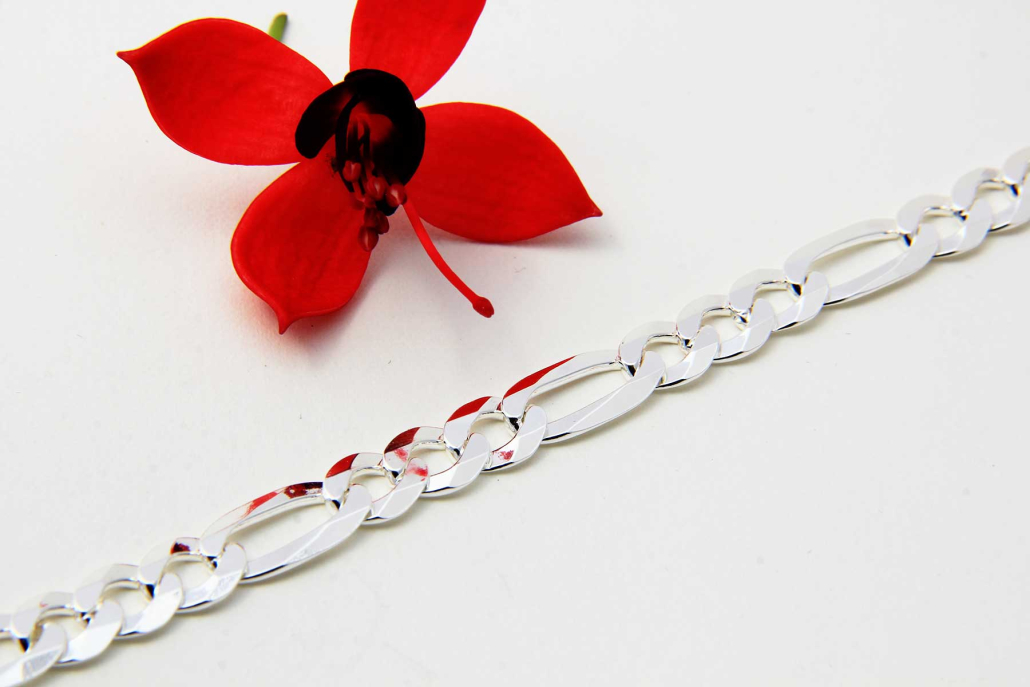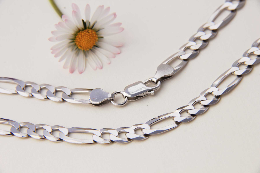Posebej dolga, široka, masivna srebrna verižica veza figaro.