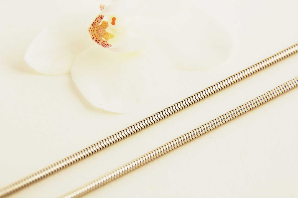 Masivna toga verižica okroglega profila, ki spominja na kačjo kožo. Zapira se z karabinerjem.