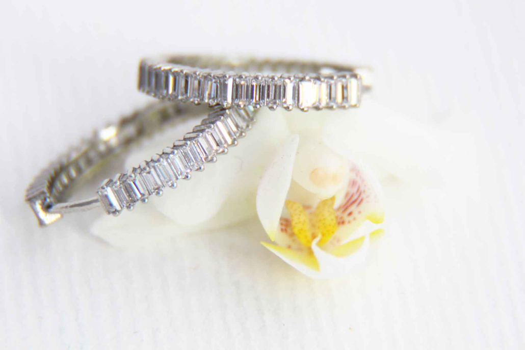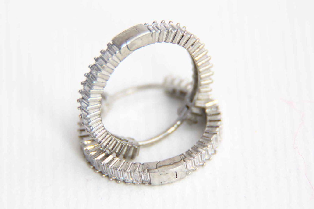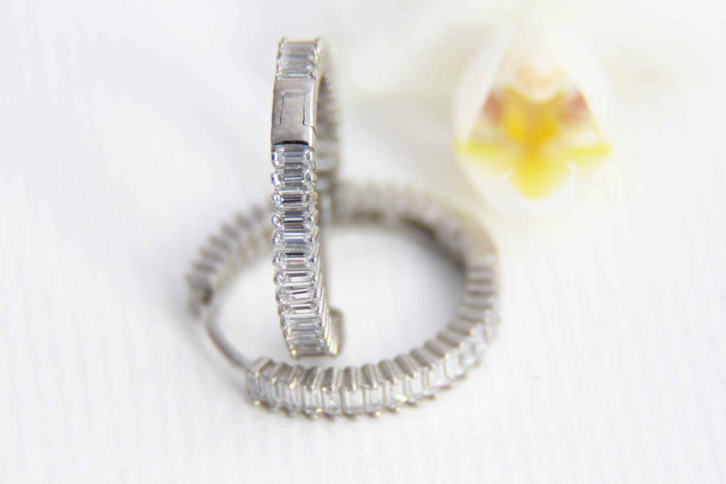 Srebrni kreoli, z odpiranjem na zglob, okovani z vzdolžnimi cirkoni.