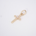 Preprost obesek v obliki ozkega križca iz rumenega zlata, s cirkonom v sredini.