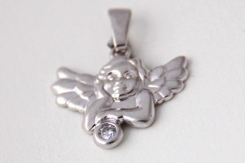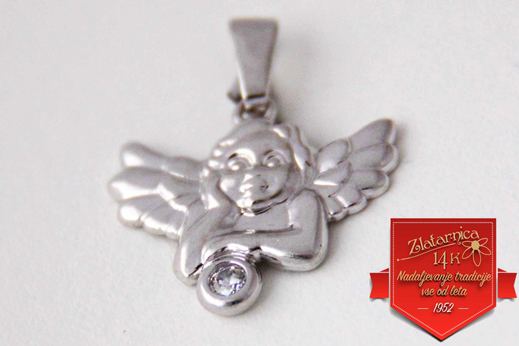 Obesek figura angel Fiorucci iz belega zlata s cirkonom.