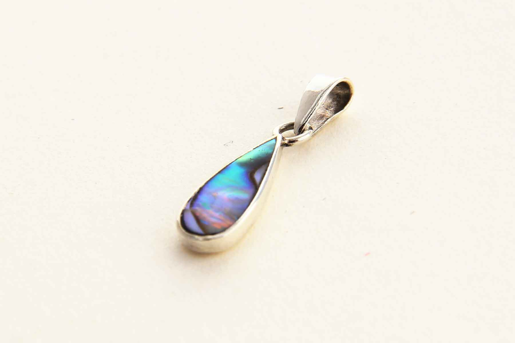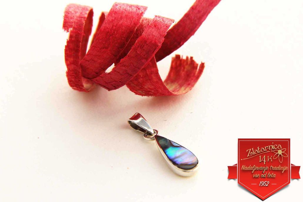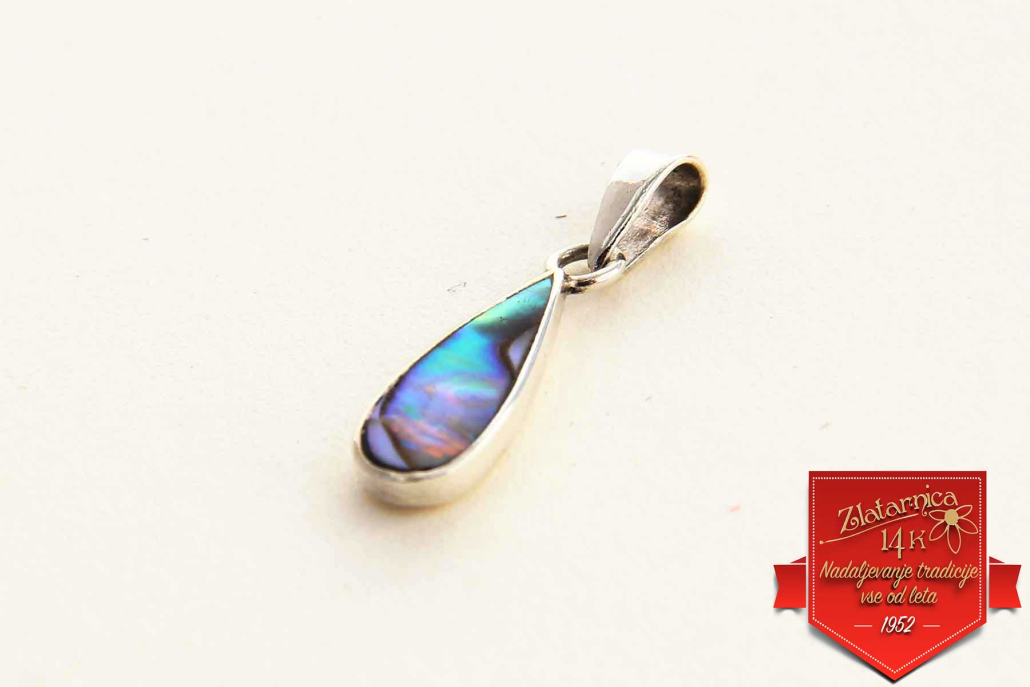 Obesek iz biserne matice prelivajočih se barv v obliki kapljice.