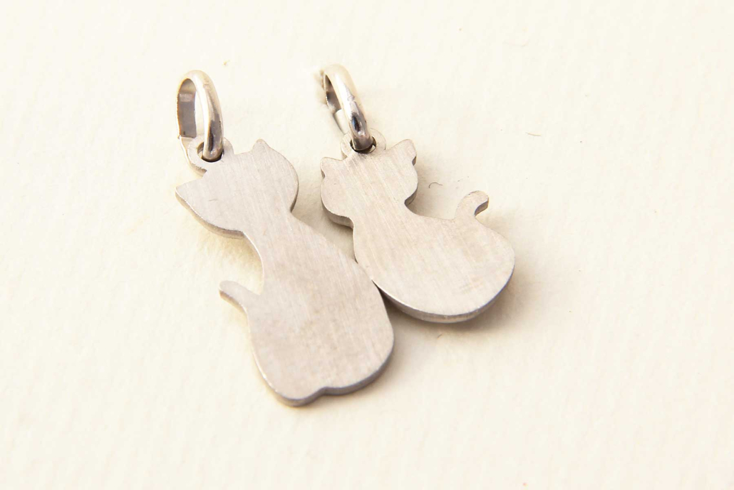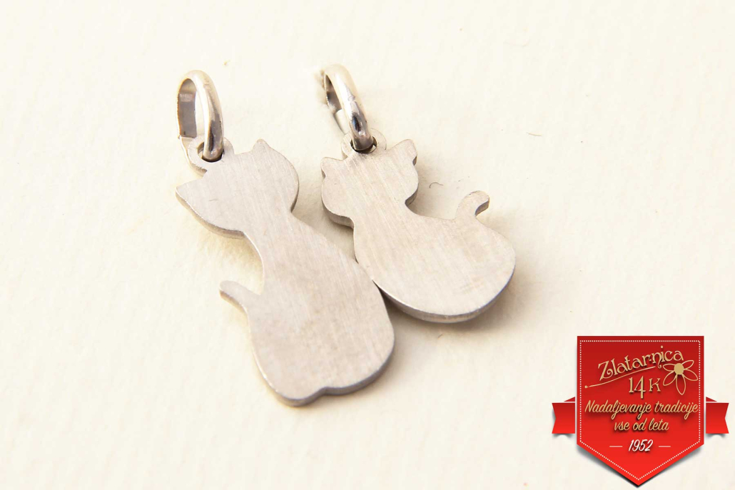 Srebrni obesek v obliki matiranih silhuet dveh zaljubljenih mačk.Možnost graviranja je na obeh straneh.