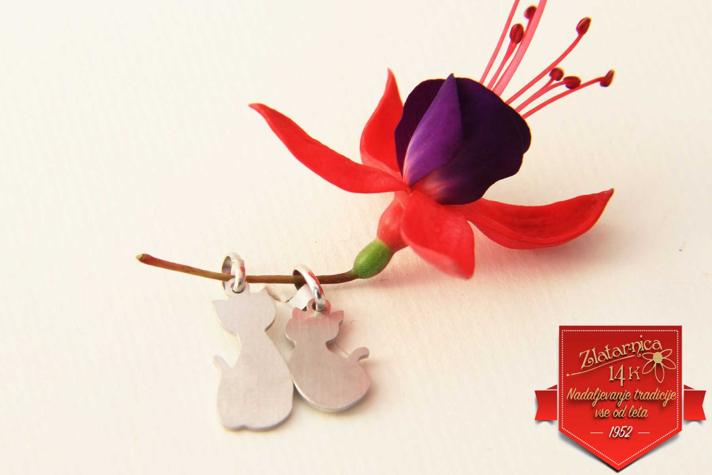 Srebrni obesek matirane površine-zaljubljeni mački.