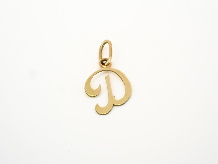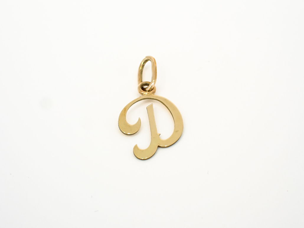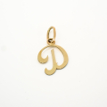 Obesek-pisana črka D iz rumenega zlata. Po naročilu izdelamo tudi druge črke, različnih pisav, dimenzij in barv zlata.