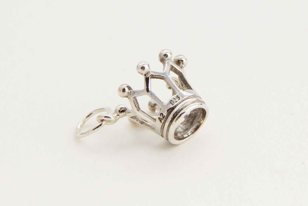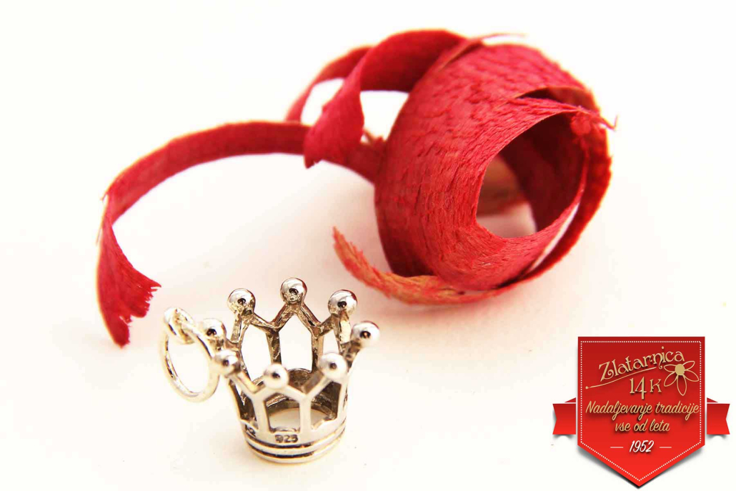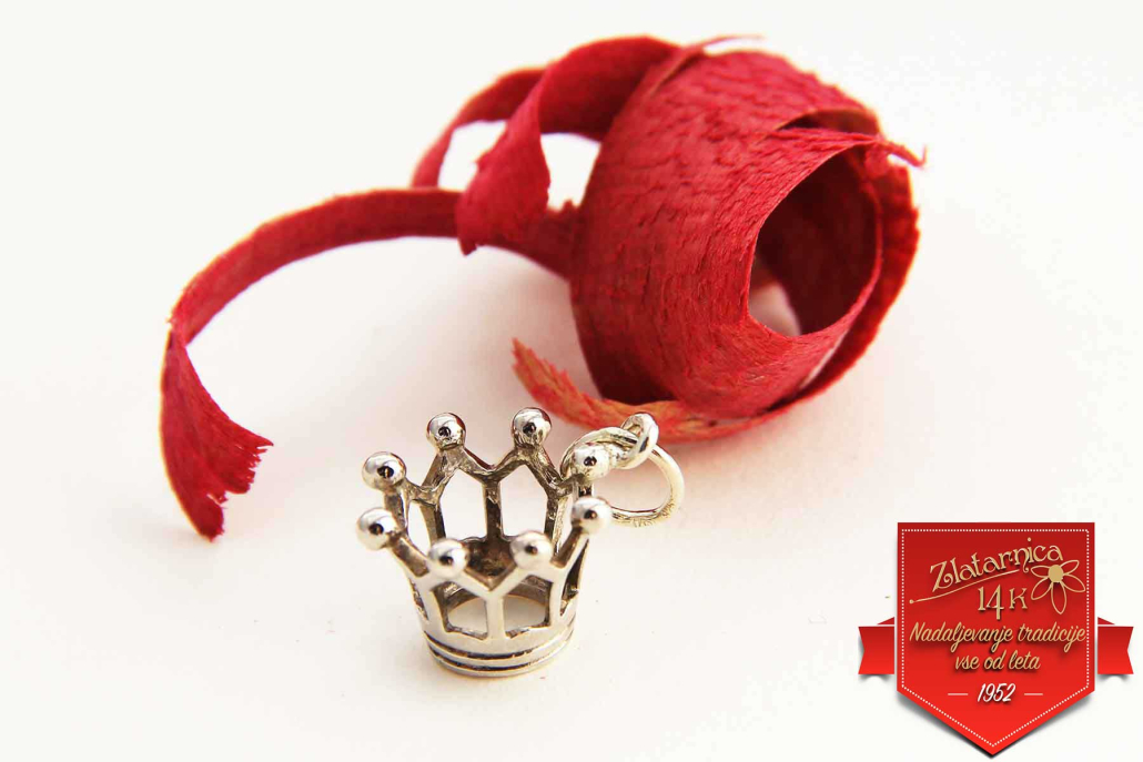 Srebrni obesek v obliki okrogle kronice z bunkicami na lokih.