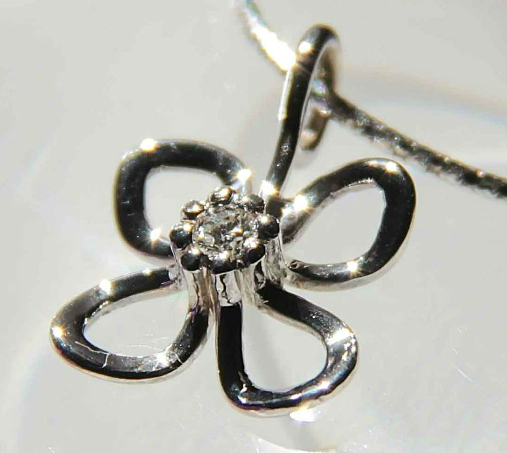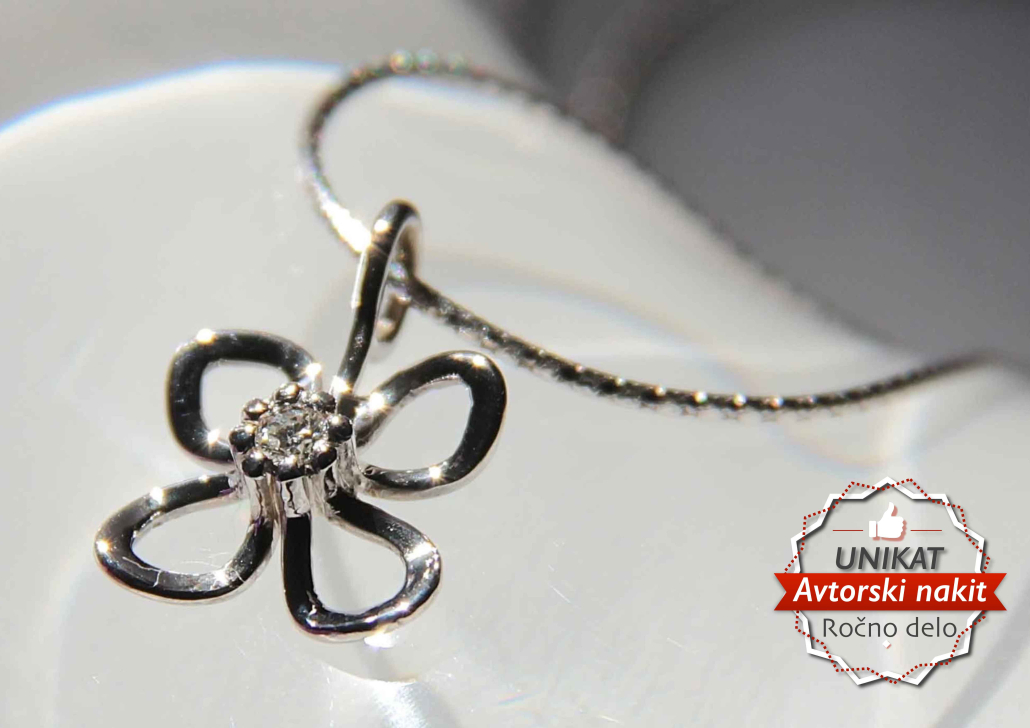 Unikaten in ročno izdelan obesek v obliki lotosovega cveta iz belega zlata in briljanta.