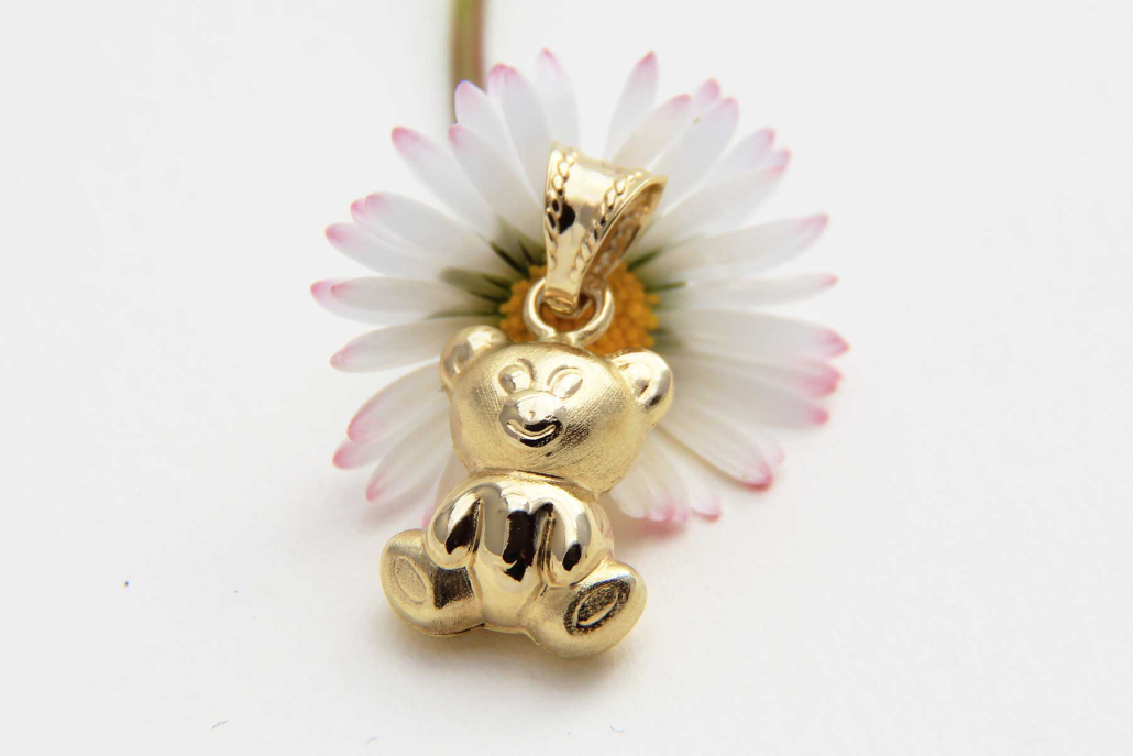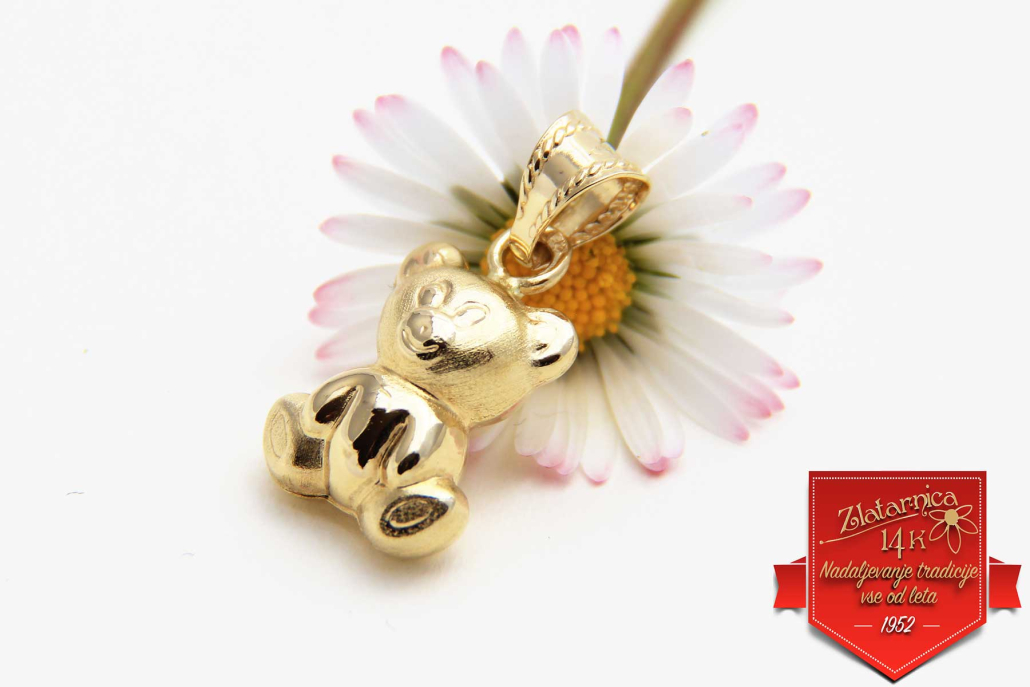 Obesek v obliki medvedka iz rumenega zlata. Odlično darilo za otroka.