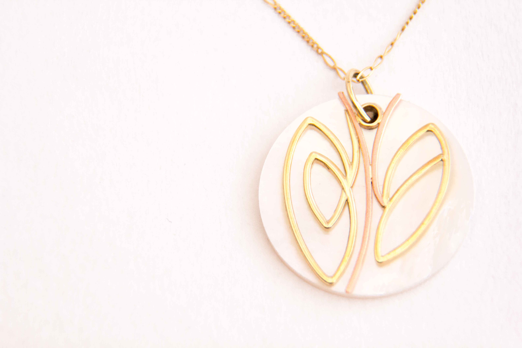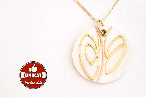 Material: rumeno in rdeče zlato (585), bela biserna matica školjke bisernice.