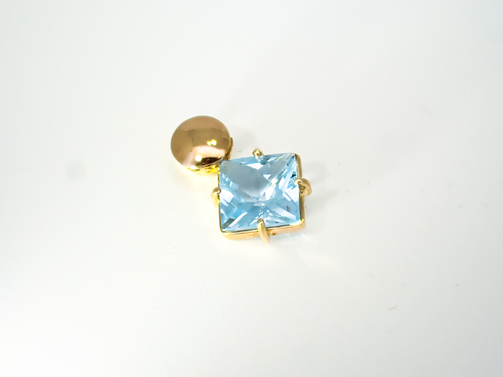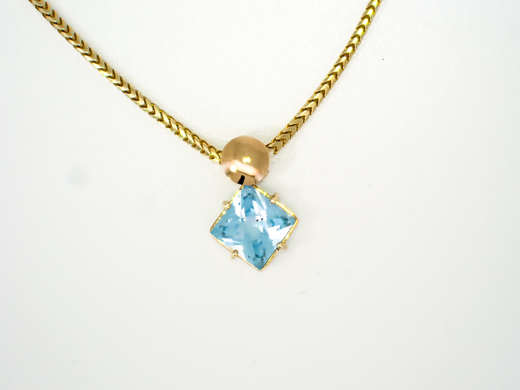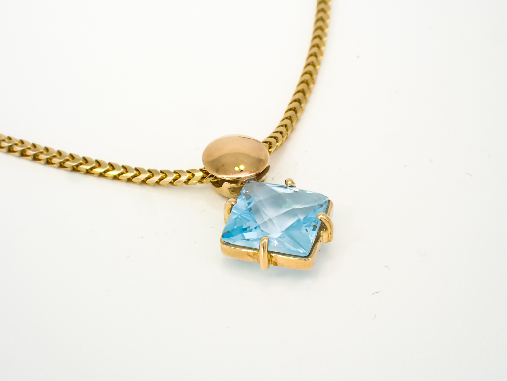 Ročno izdelan obesek iz rumenega zlata in modrega špinela.
