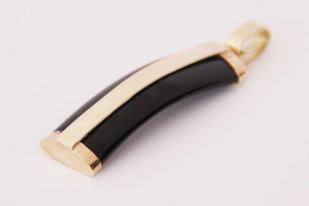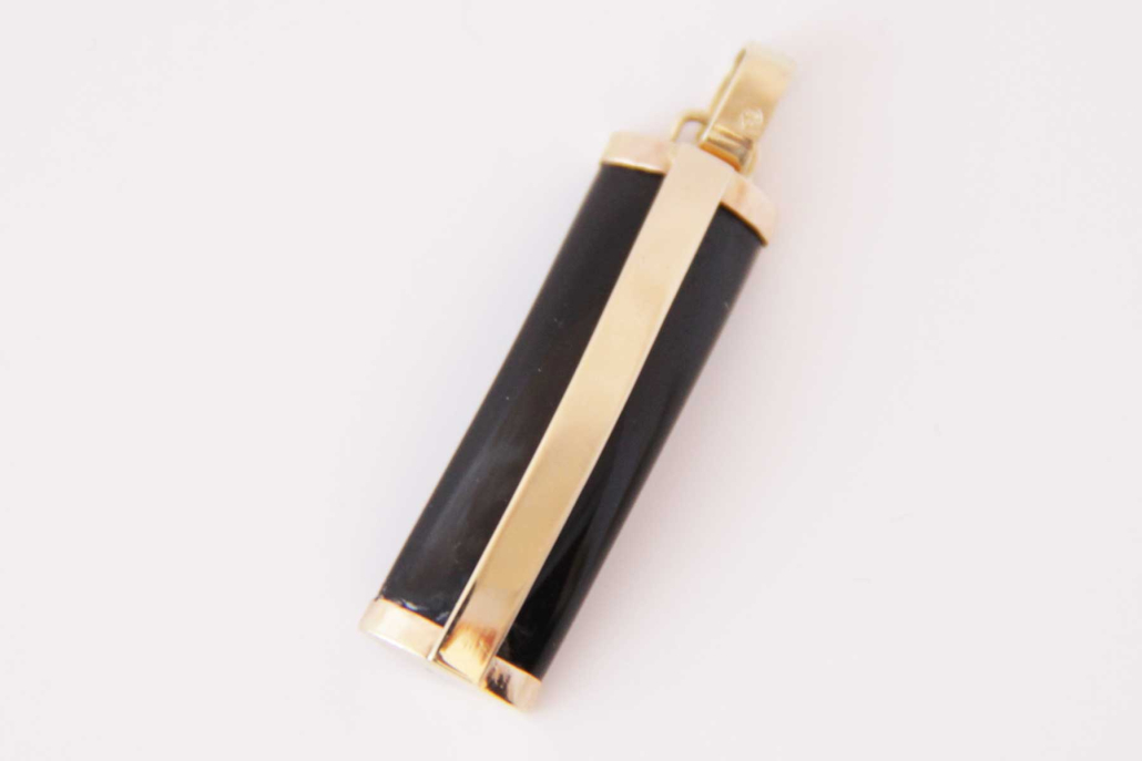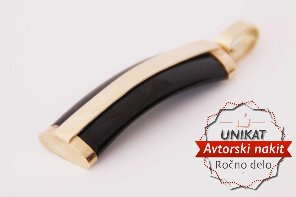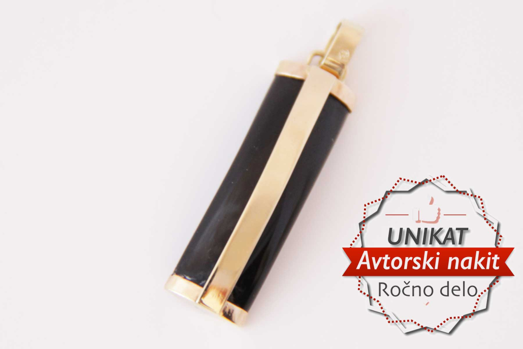 Obesek iz rumenega zlata in vzdolžnega oniksa.