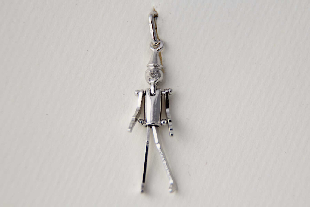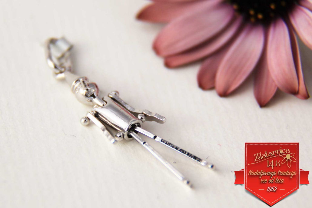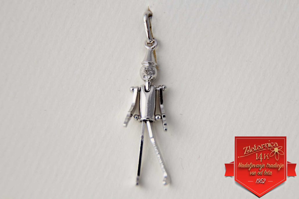 Srebrni obesek figura Ostržka z gibljivimi deli.