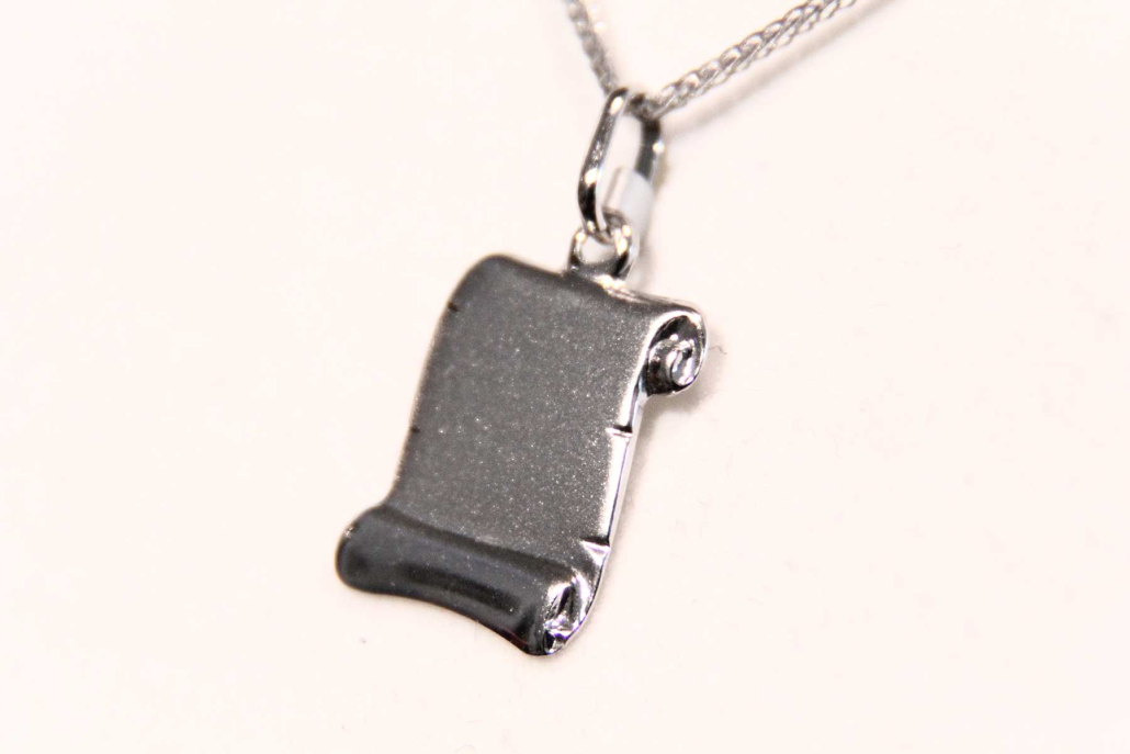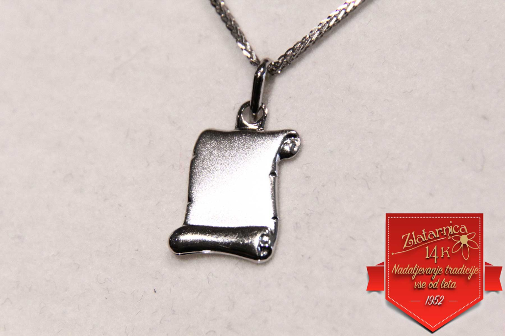 Obesek v obliki papirusa s peskano površino na sprednjem delu. Gravirati je možno spredaj in na hrbtni strani.