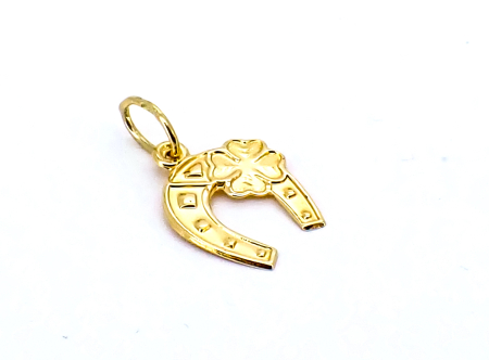 Obesek v obliki podkvice z deteljico iz rumenega zlata.