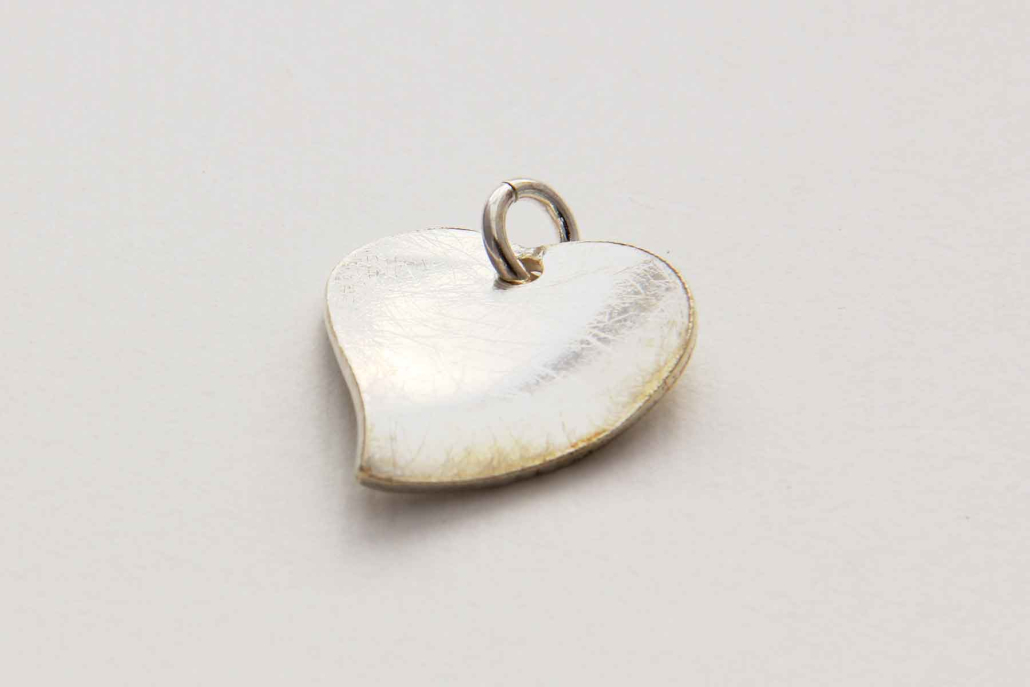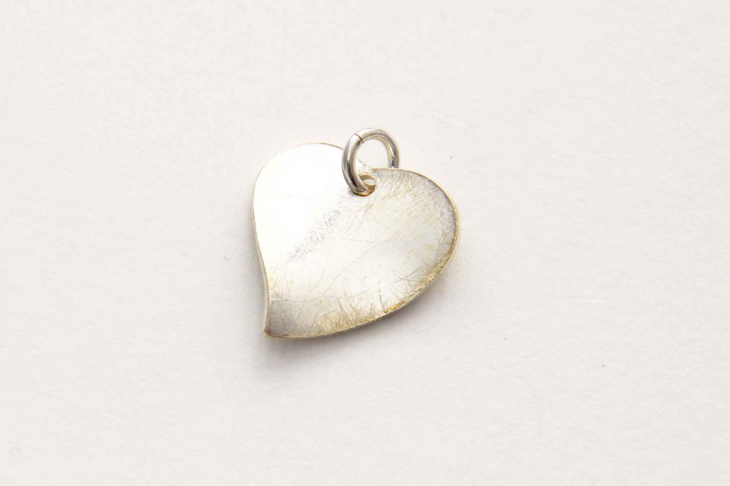 Masiven srebrni obesek v obliki upognjenega srca mat/praskane površine.