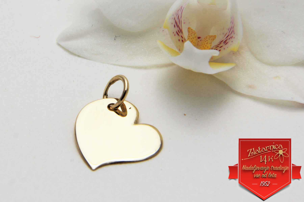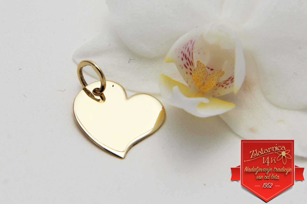 Obesek iz rumenega zlata v obliki srca z možnostjo gravure iz obeh strani.