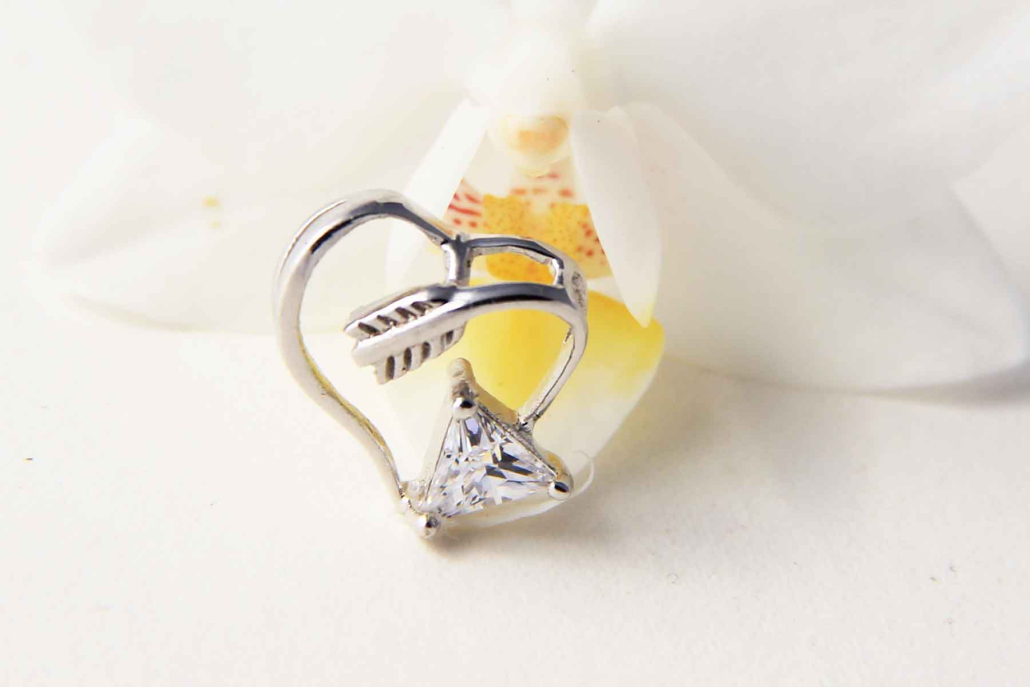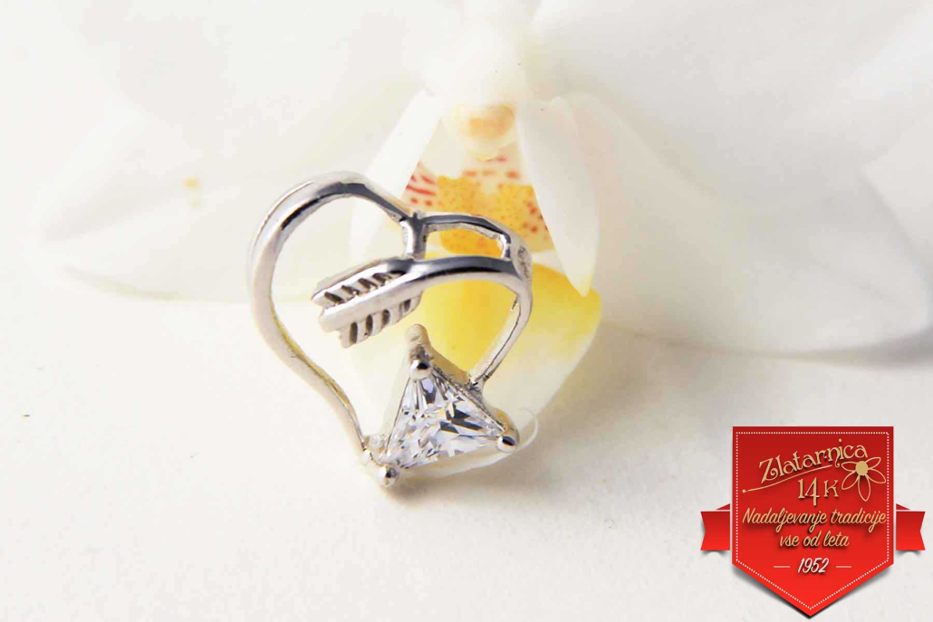 Srebrno srce oblikovano v puščico s cirkonom na koncu.