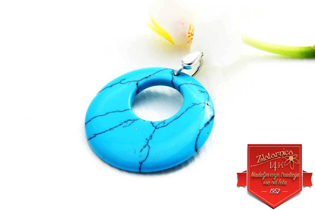 Material: srebro (925), naravni turkiz (premera 25 mm).