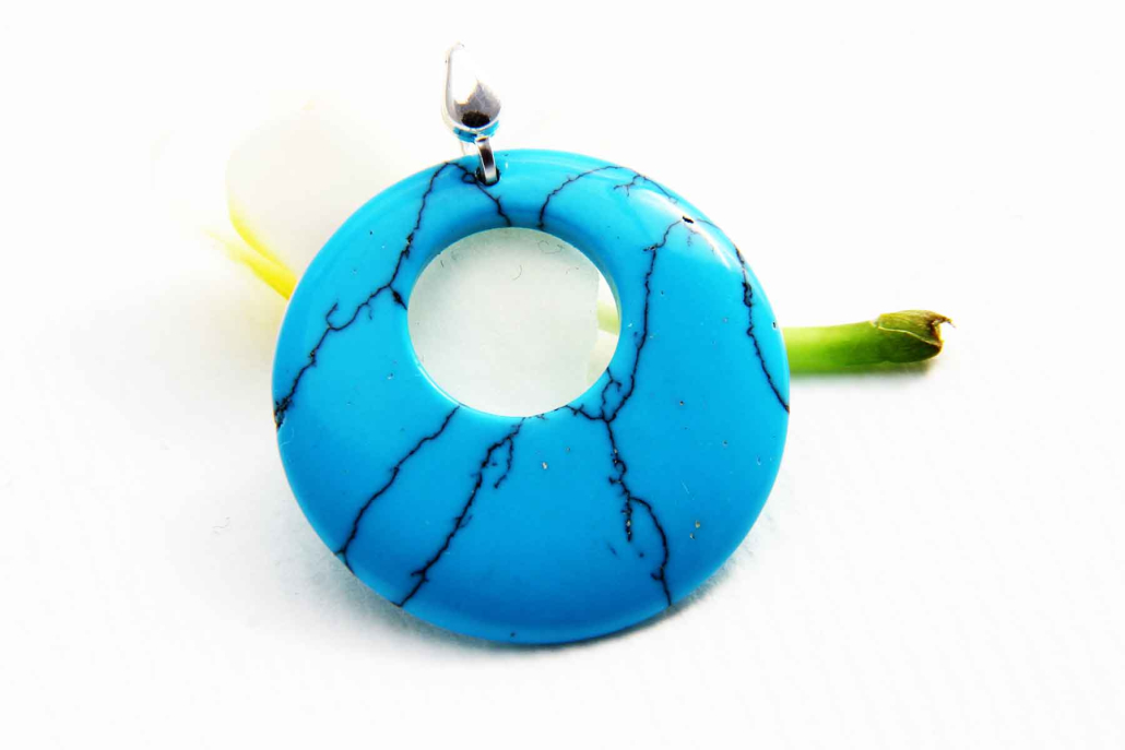 Preprost obesek z naravnim turkizom in srebrnim členom.