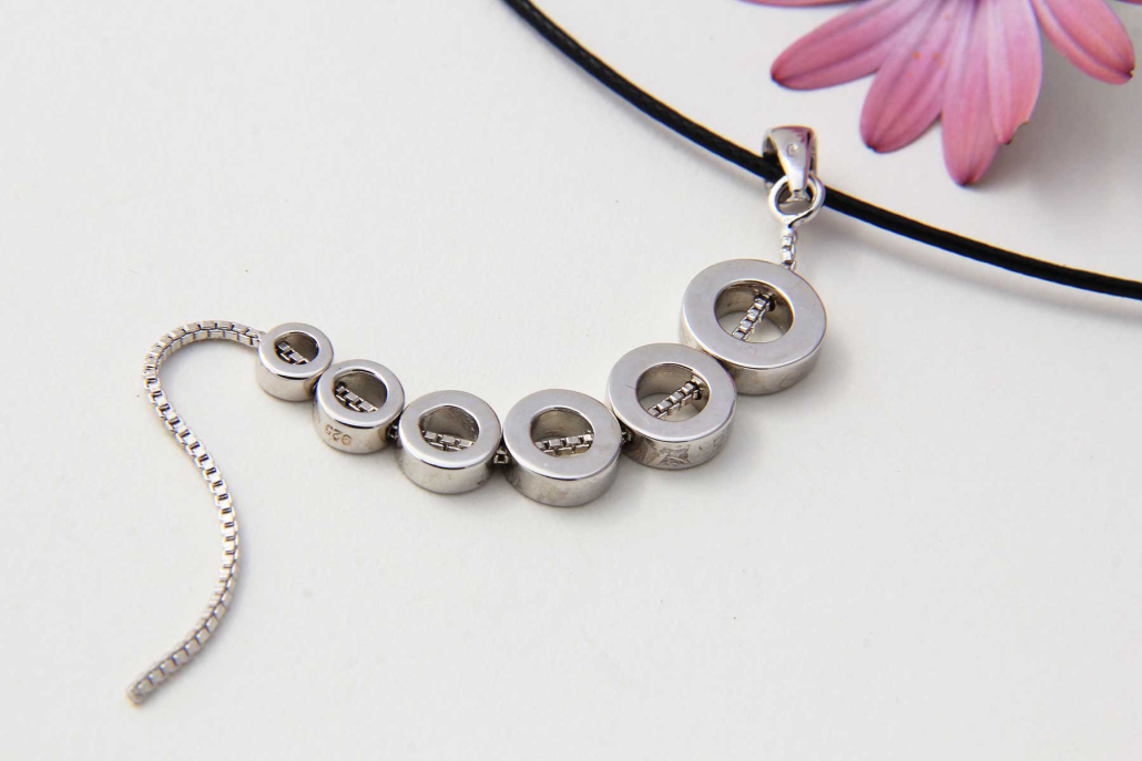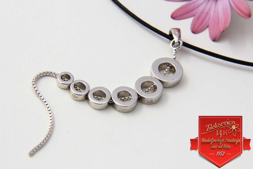 Srebrni obesek v sestavljen iz šestih visečih krogov na verižici vzorca Venecia. Enako kot osmica so tudi neprekinjeni krogi simbol neskončnosti in povezanosti.