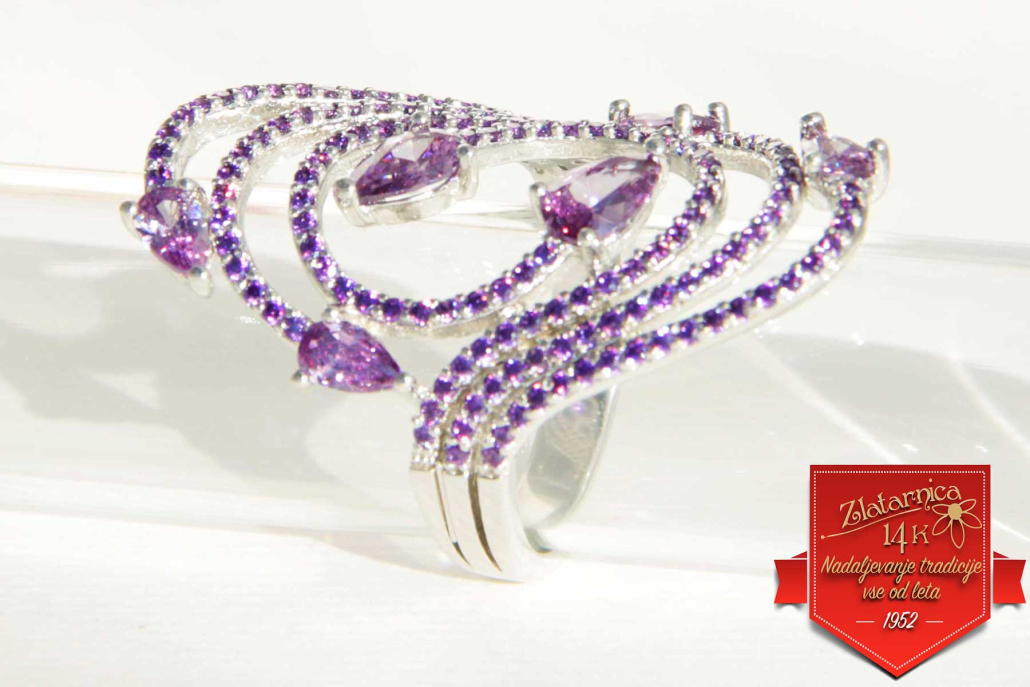 Material: rodinirano srebro (925), vijolični cirkoni.