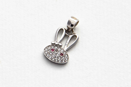 Prefinjen obesek v obliki podobe zajčka v celoti obdelan z drobnimi cirkoni.
