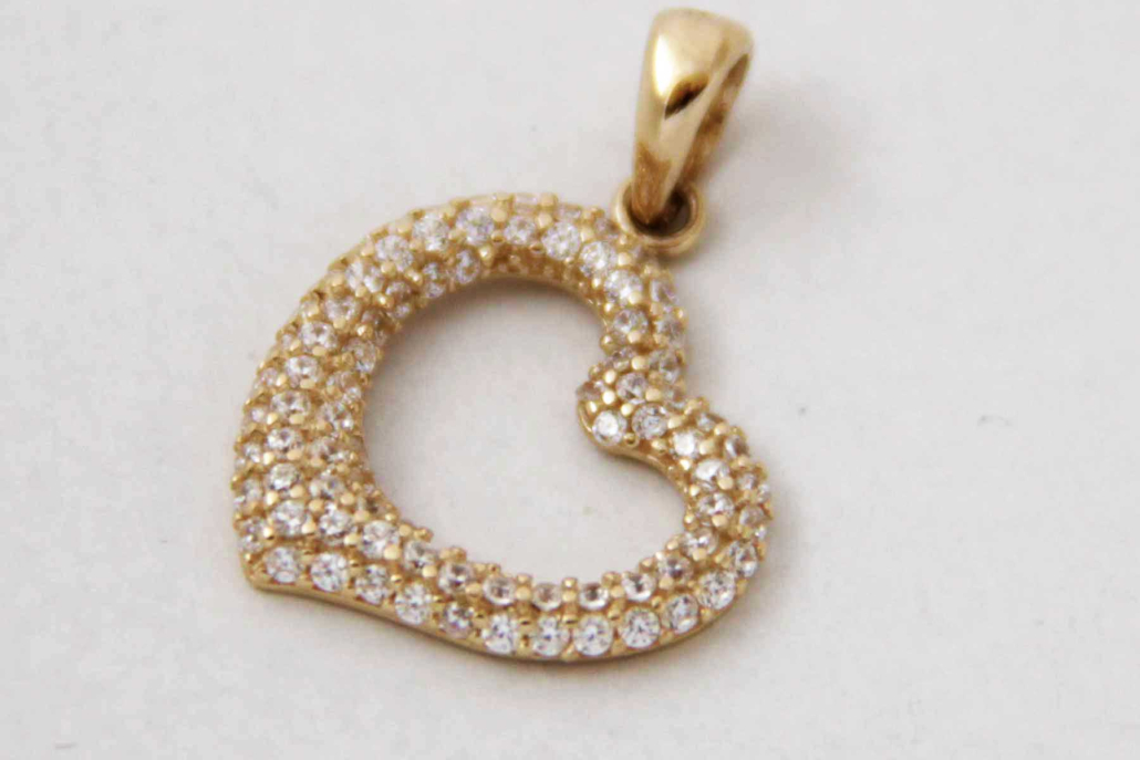 Obesek v obliki srčka iz rumenega in zlata v celoti obdelan s cirkoni.