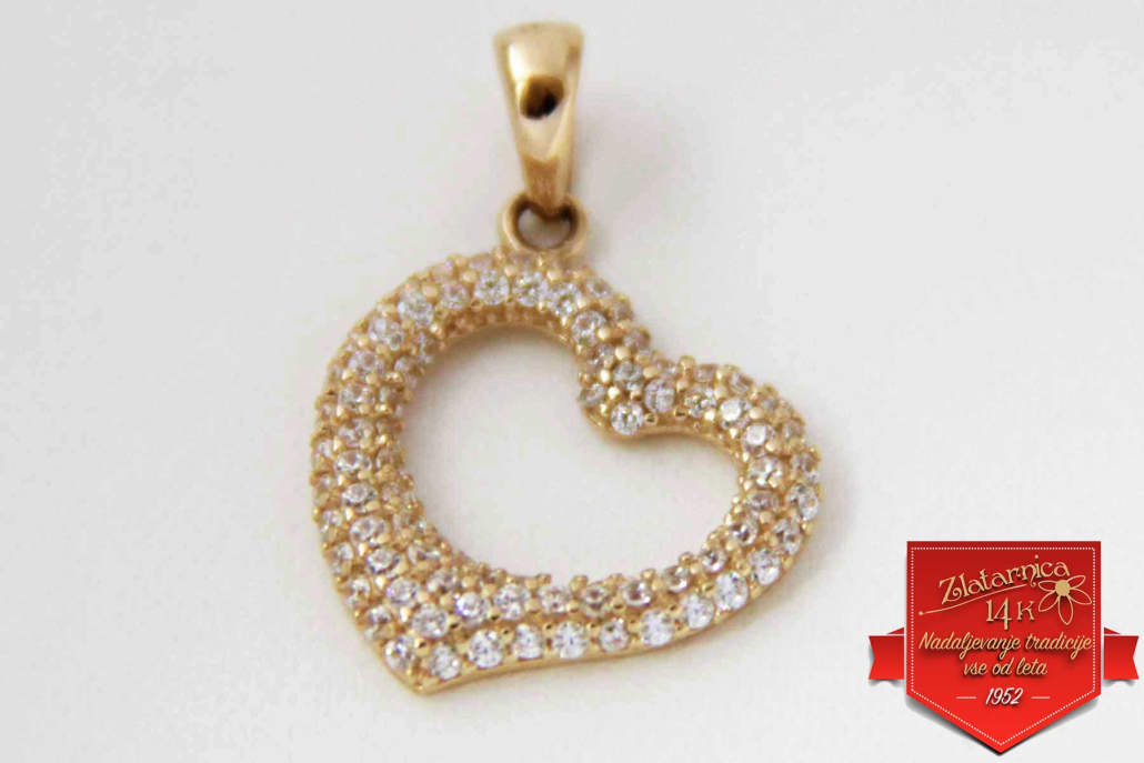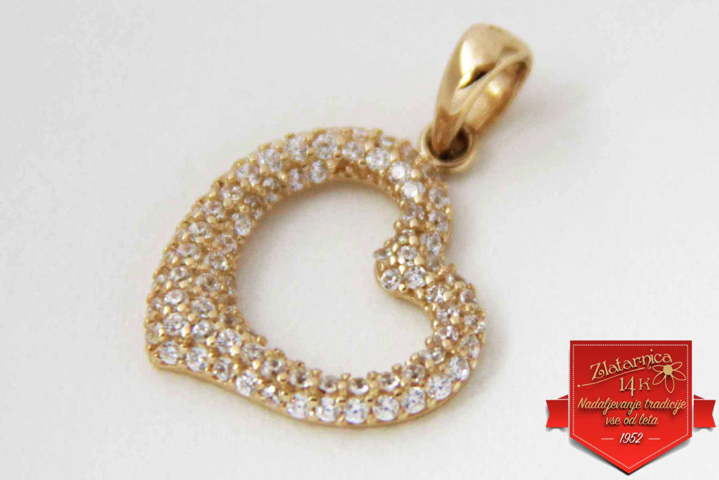 Obesek iz rumenega in zlata, srce s cirkoni.