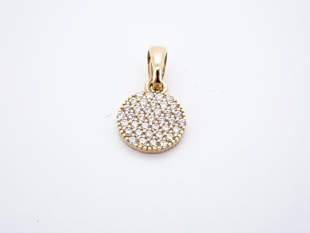 Minimalistična ploščica iz rumenega zlata v celoti obdelana s cirkoni.