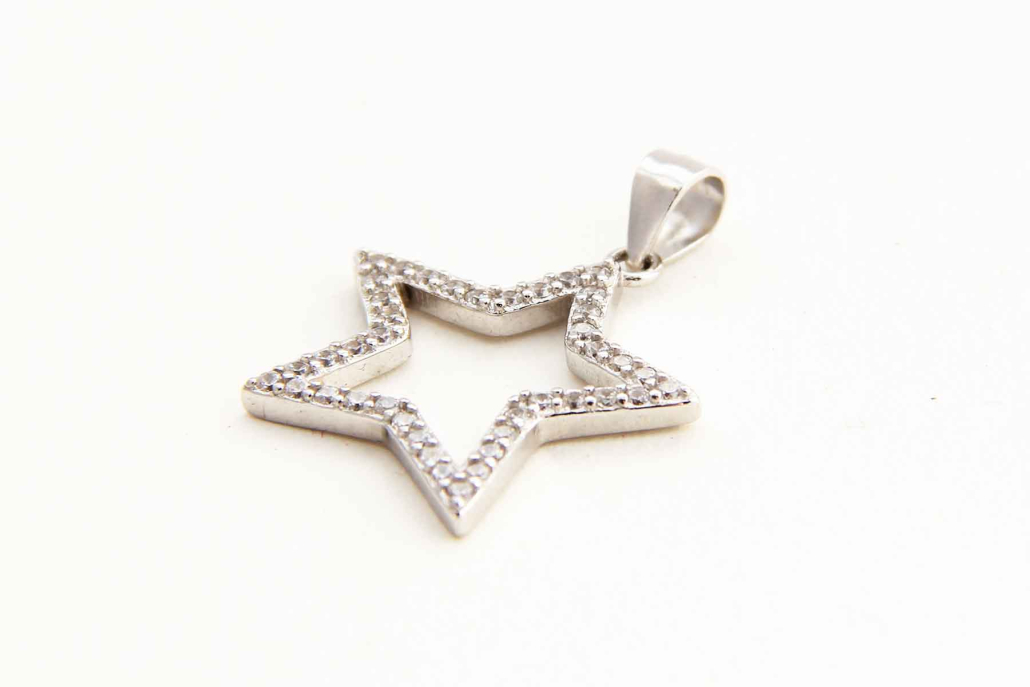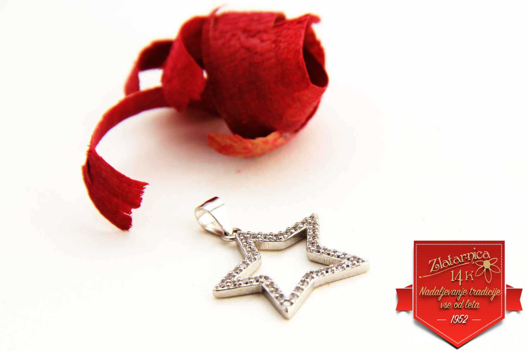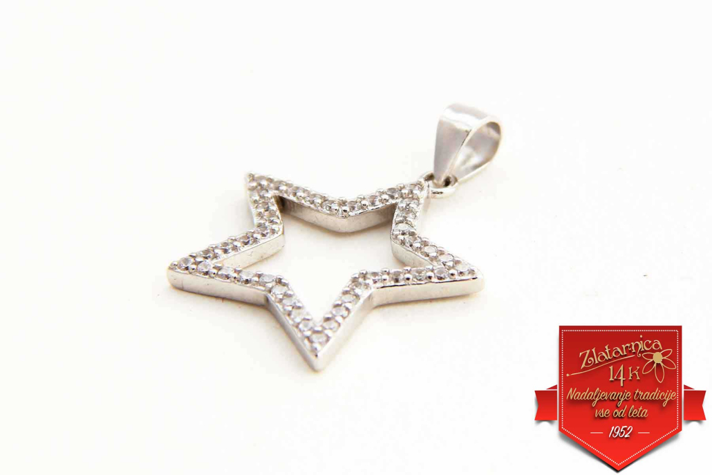 Srebrni obesek v obliki zvezde z robom okovanim s cirkoni.