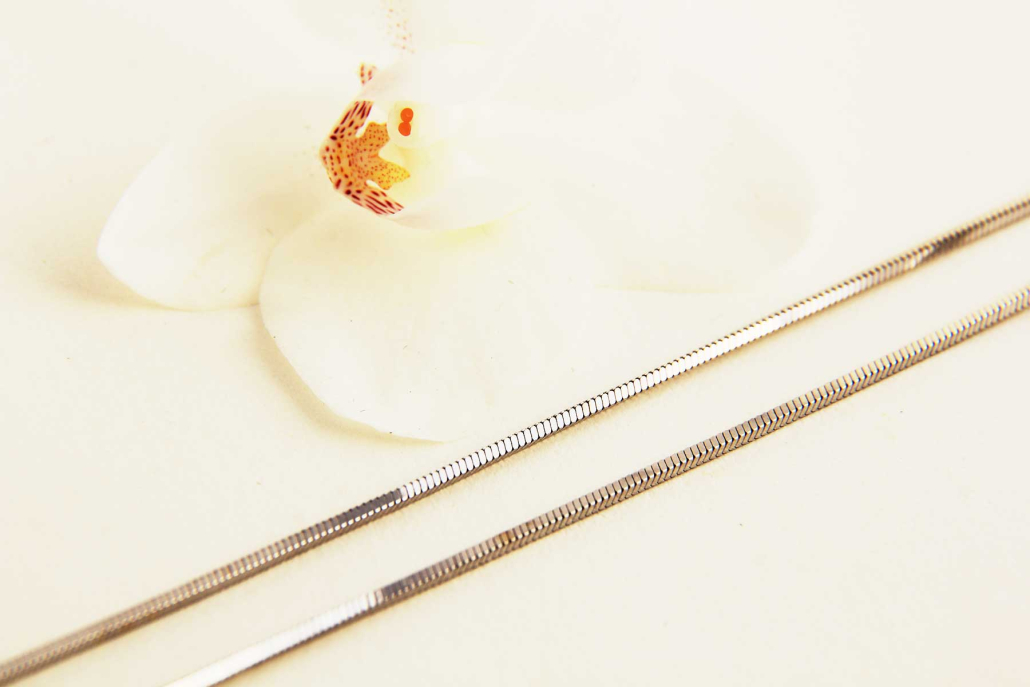Elegantna toga verižica oglatega profila primerna za obesek. Zapira se s sponko.