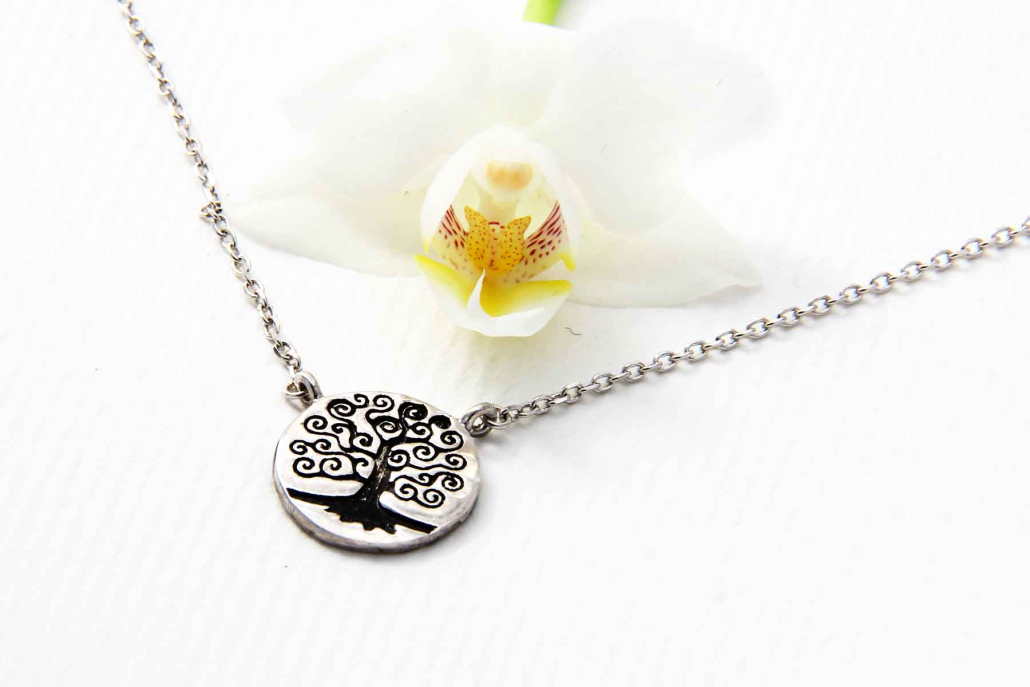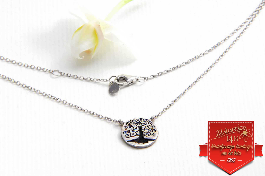 Srebrna verižica z vstavljenim obojestranskim obesekom Drevo življenja.