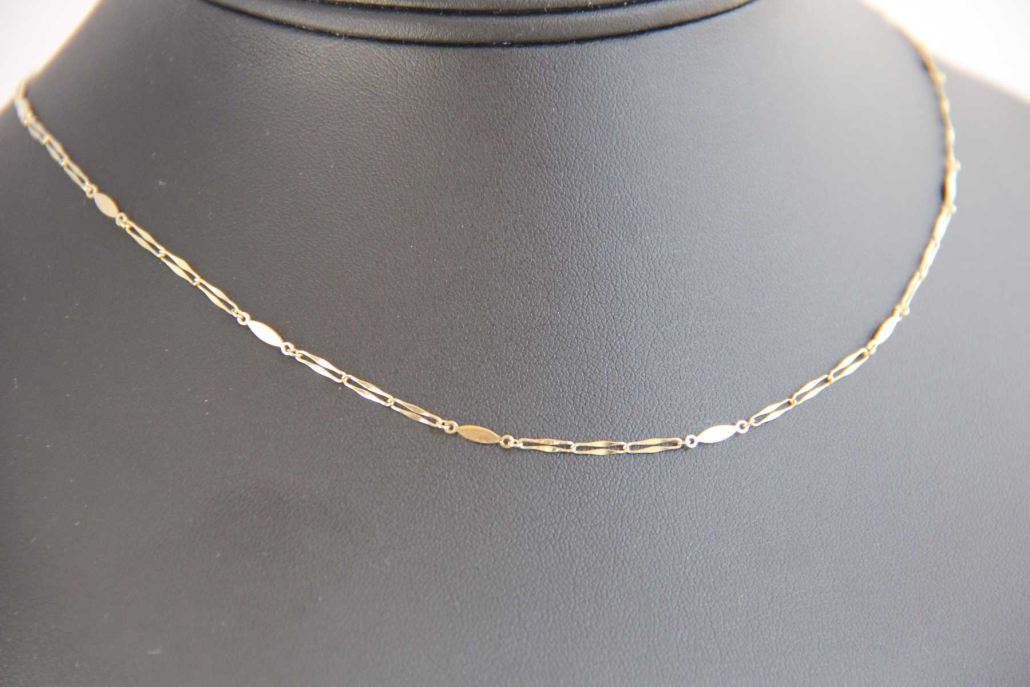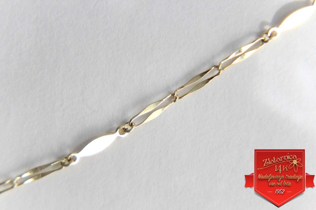 Ogrlica iz rumenega zlata, sestavljena iz podolgovatih členov in ovalnih ploščic.