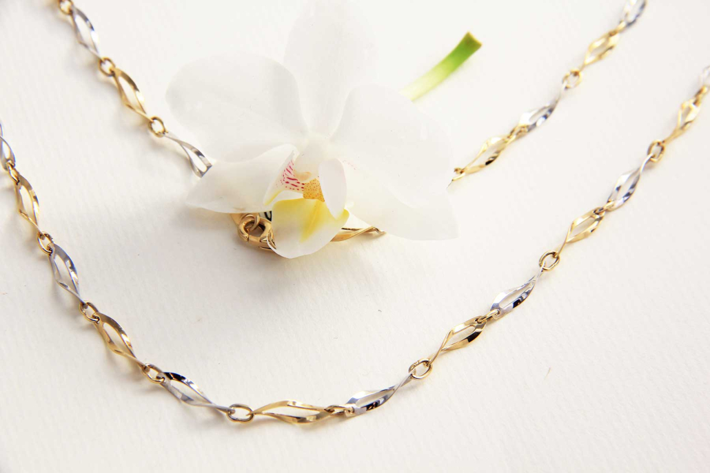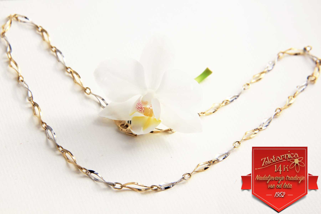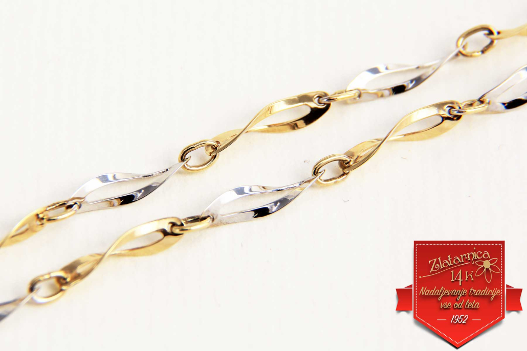 Ogrlica iz kombinacije belega in rumenega zlata z zavitimi členi.