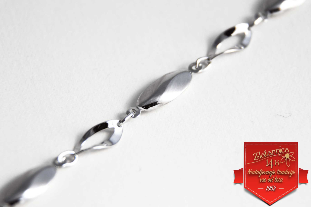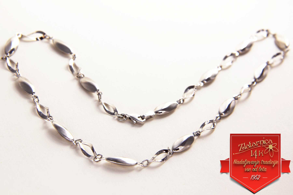 Igriva ogrlica iz belega zlata z zavitimi gladkimi in matiranimi členi.