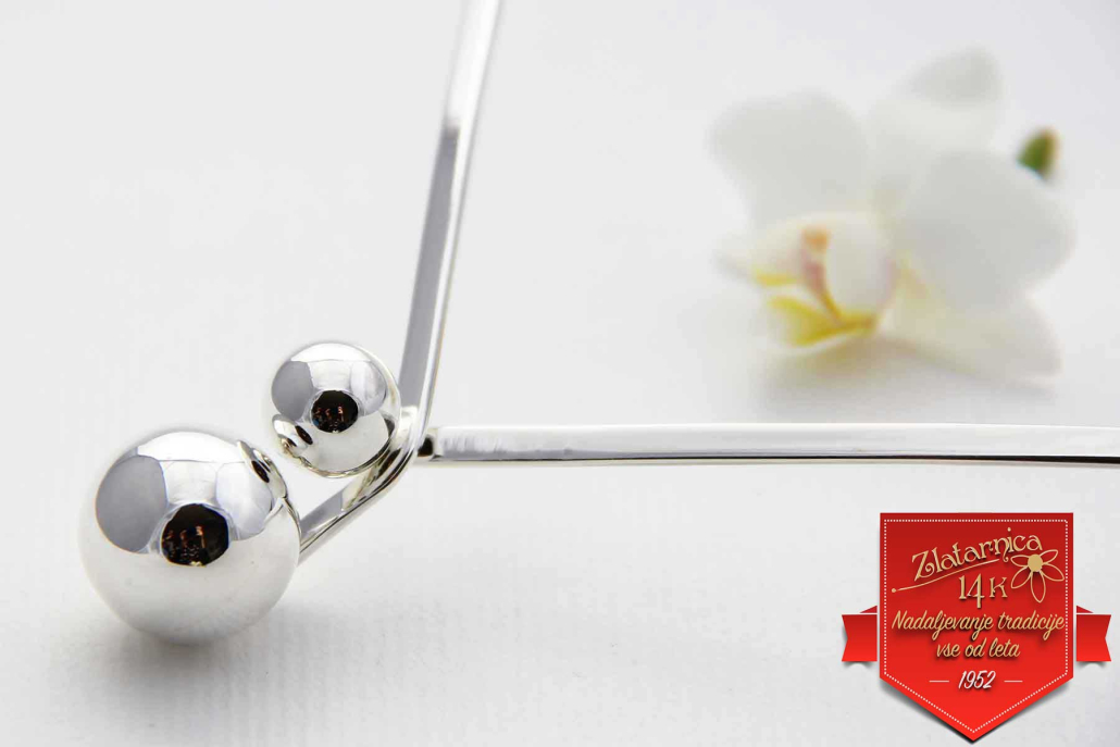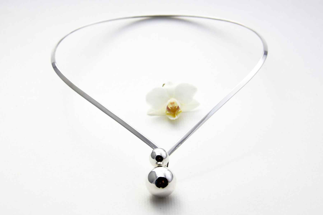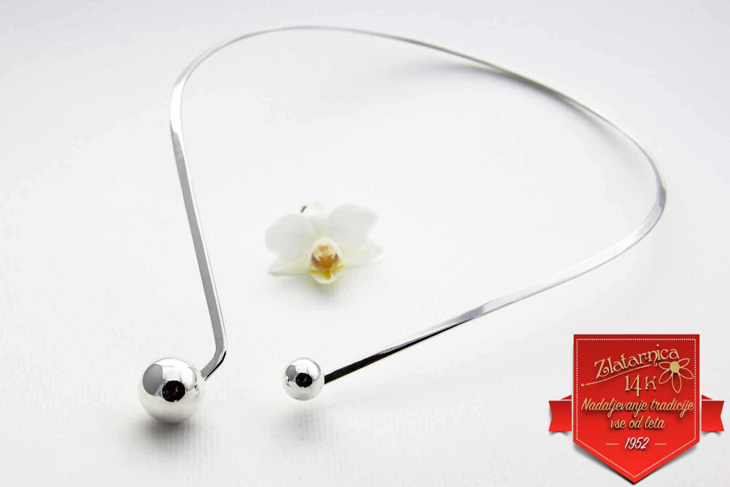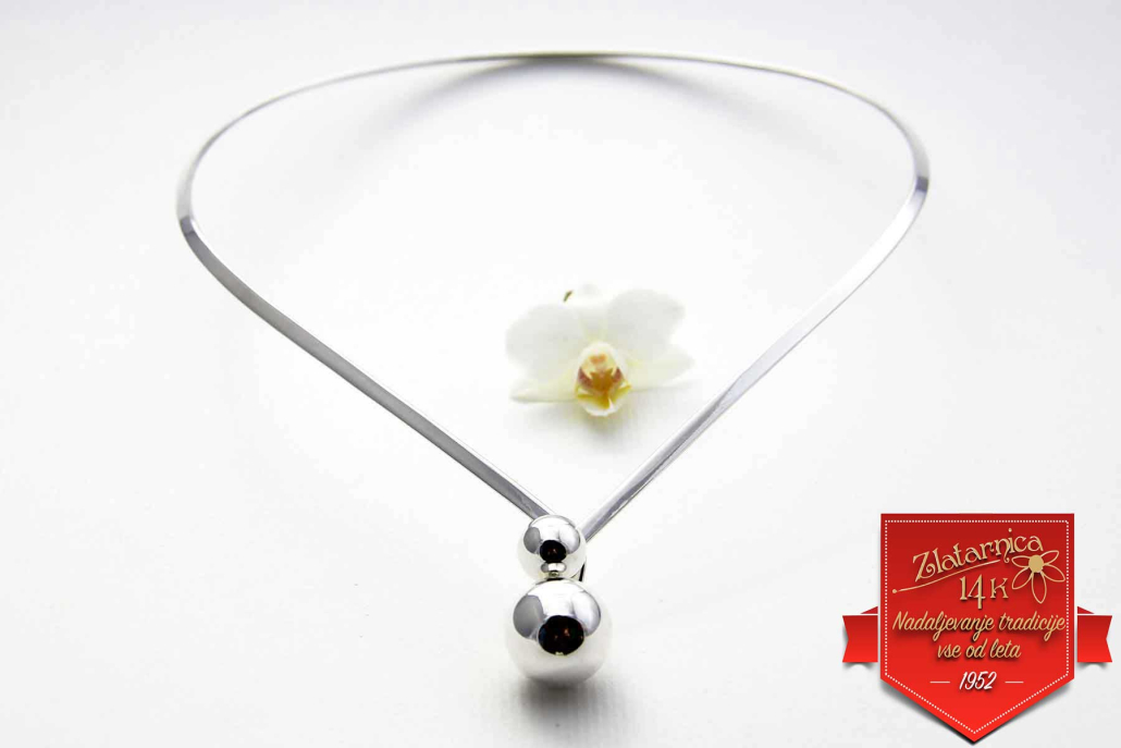 Eleganten gladki obroč z dvema kroglama, ki služita kot zapiralo na sprednji strani.