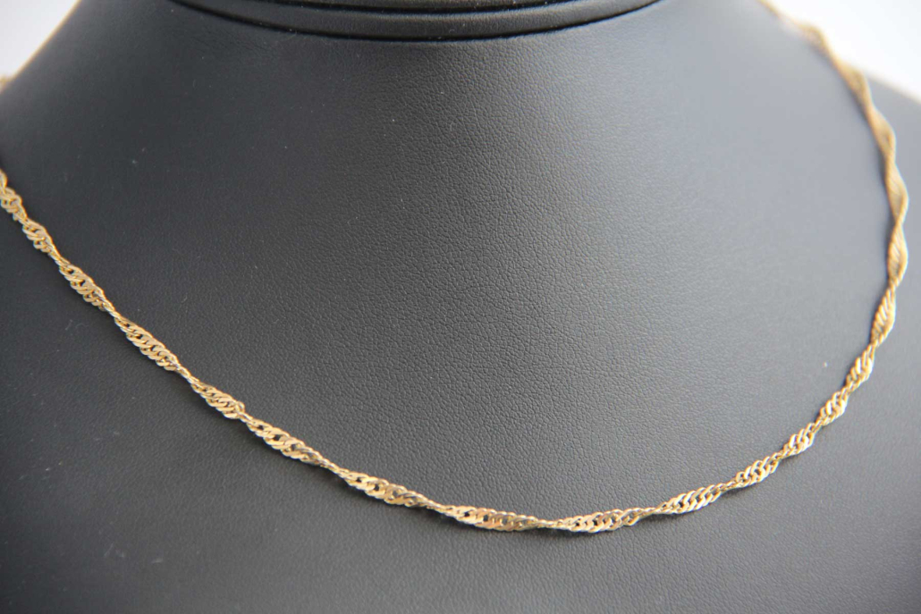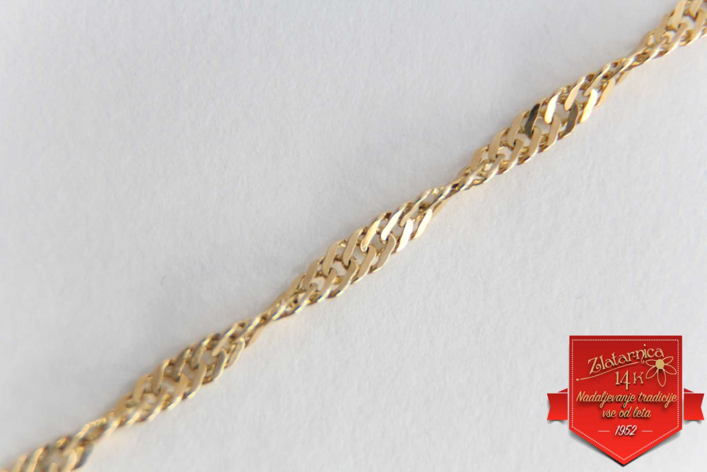 Ogrlica iz rumenega zlata, ki jo sestavljajo zaviti členi, veza singapur.