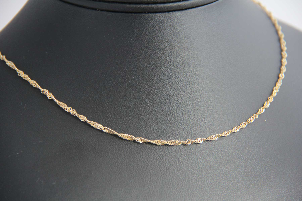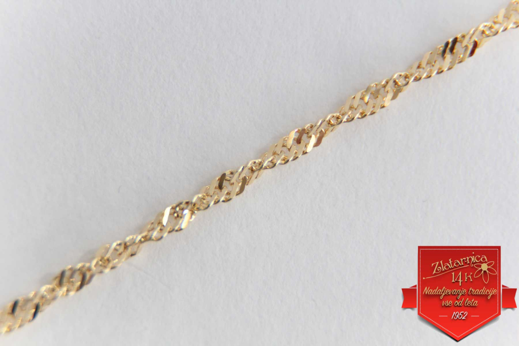 Ogrlica iz rumenega zlata, ki jo sestavljajo členi, vezani v vezu singapur.