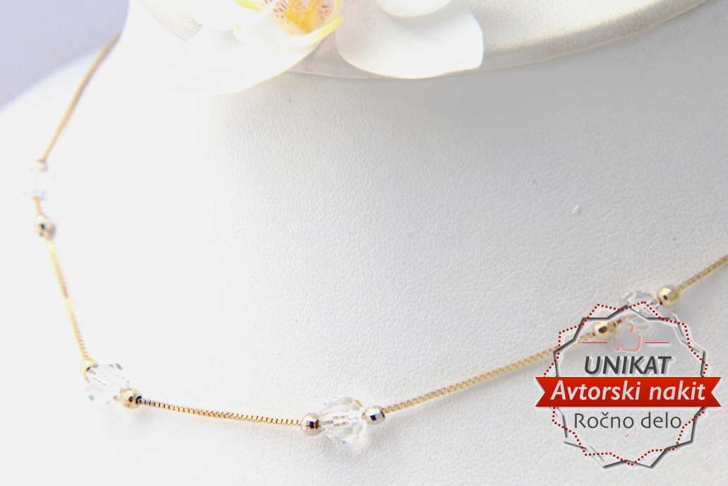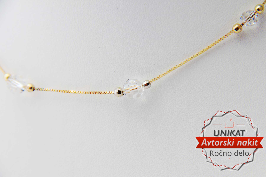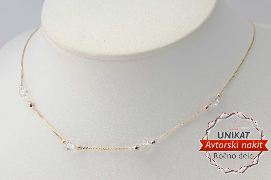 Trendovska verižica vzorca Venecianer z zlatimi kroglicami in štirimi prosojnimi kristali Swarovski.