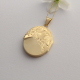 Veliki okrogli medaljon iz rumenega zlata z okrasno gravuro spredaj.
