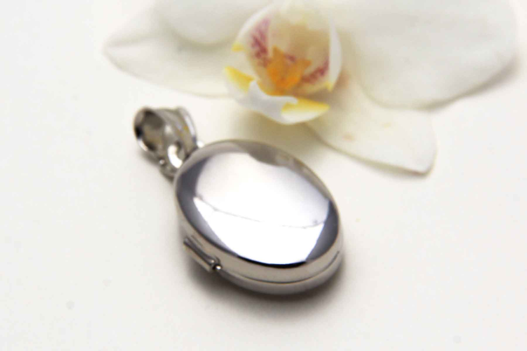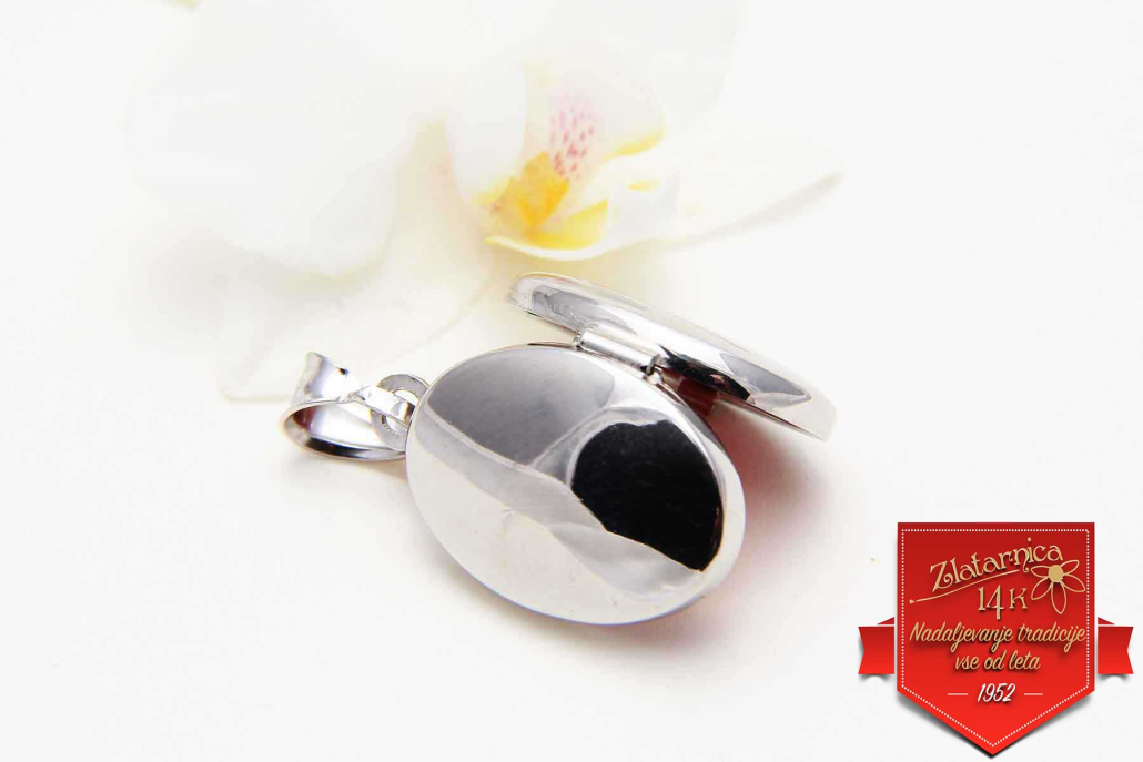 Srednje velik ovalni obesek, medaljon v katerega lahko vstavite dve fotografiji. Na sprednjo stran se lahko vgravira okrasen vzorec, začetna črka imena ali monogram. Cena gravure se določi na povpraševanje. Na hrbtni strani lahko vgraviramo tudi posvetilo, za doplačilo 12€.