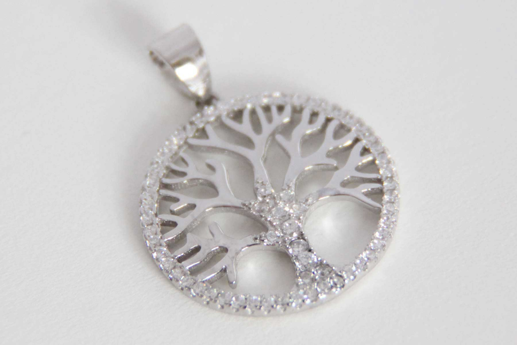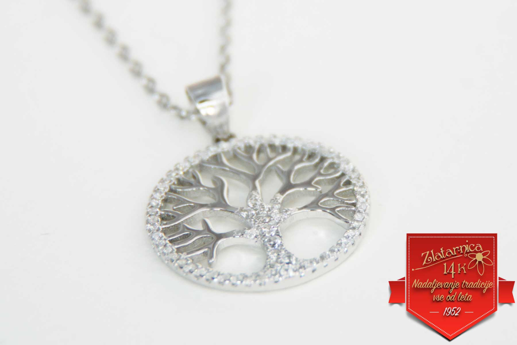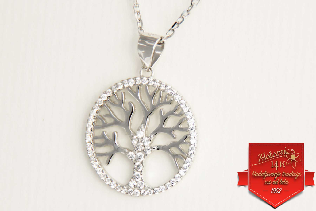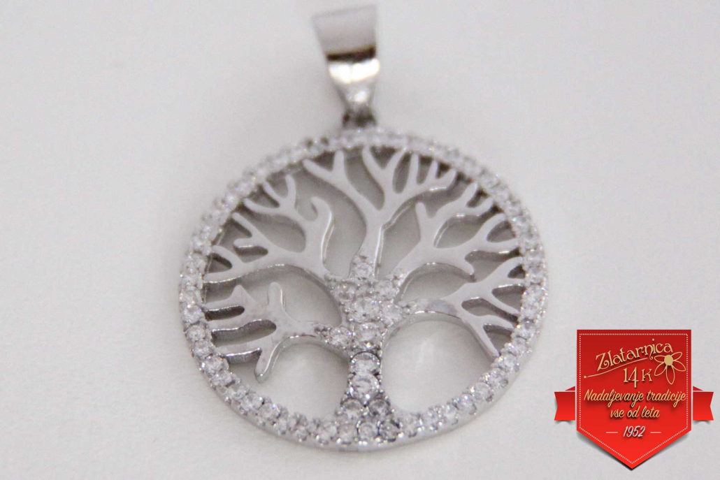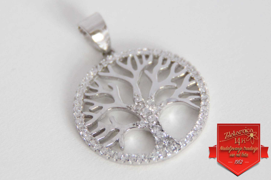 Srebrni obesek pisano Drevo življenja s cirkoni po obodu.