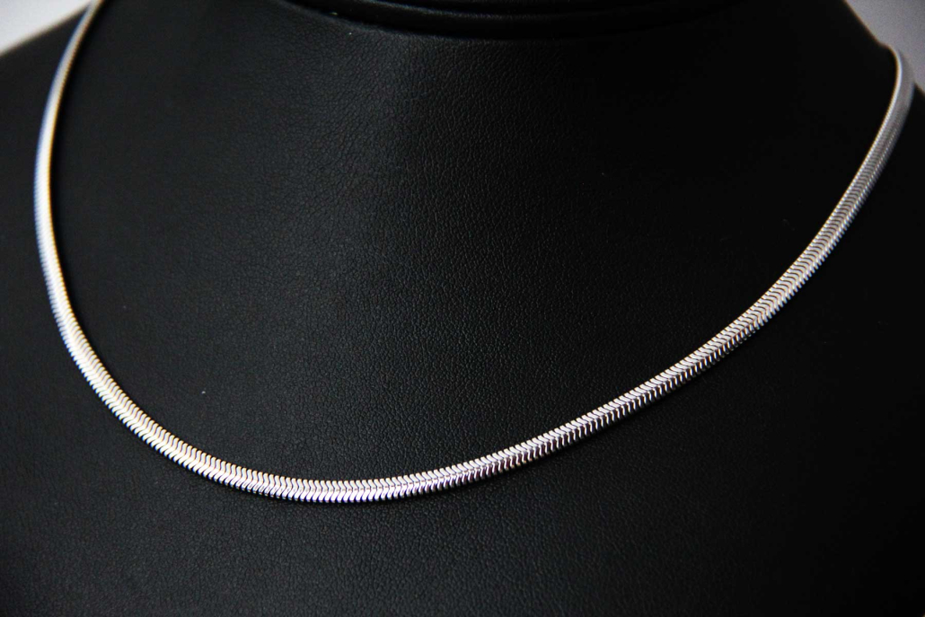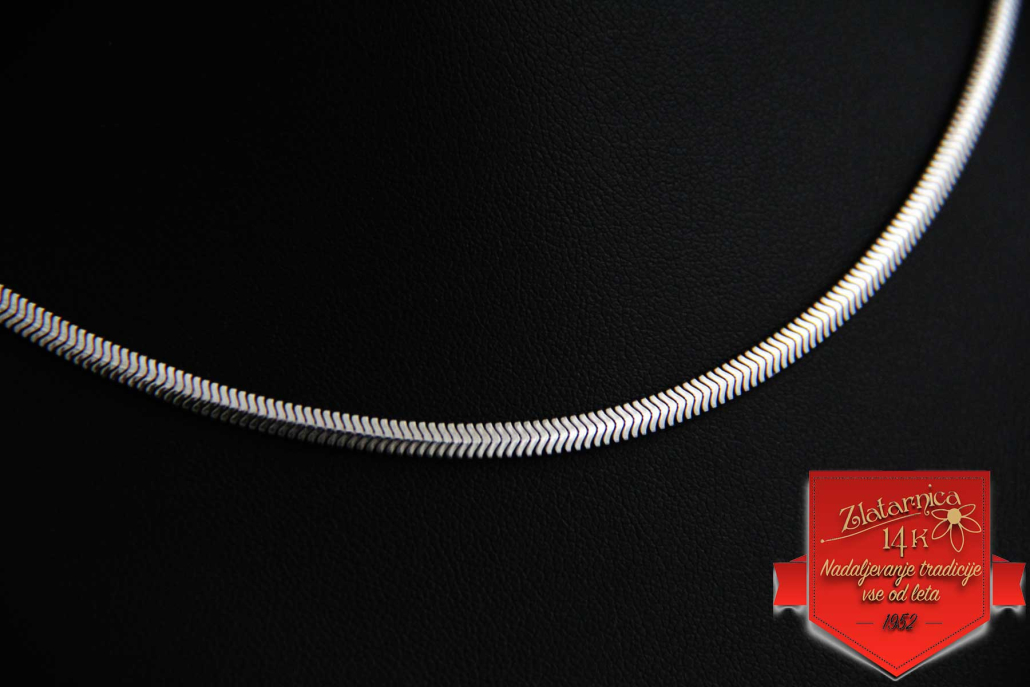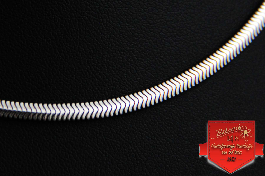 Masivna verižica iz rodiniranega srebra, ploščatega profila v videzu kače.