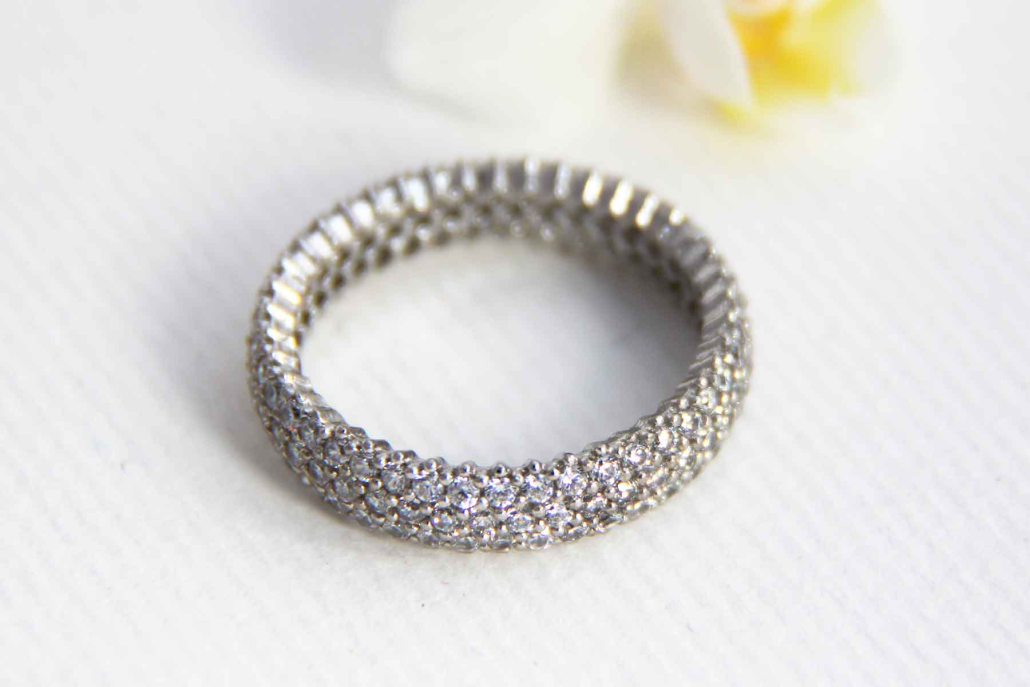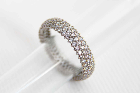 Elegantni srebrni prstan iz zaporedno vstavljenih cirkonov okrog in okrog.