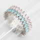 Elegantni srebrni prstan iz zaporedno vstavljenih modrih cirkonov okrog in okrog.