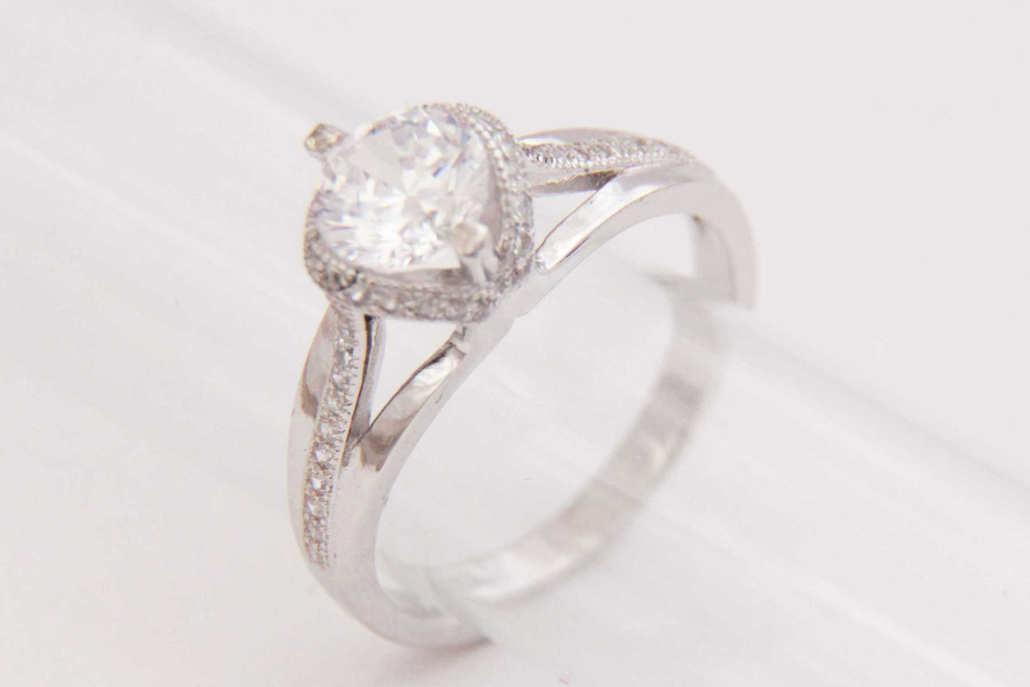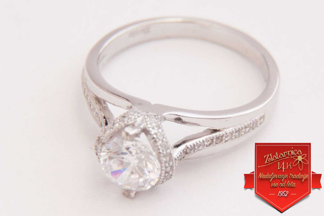 Posebna oblika soliterja z večjim cirkonom, v obliki cvetnega popka, ujetega med dve liniji obdelani z manjšimi cirkoni vzdolž prstana na obeh straneh.